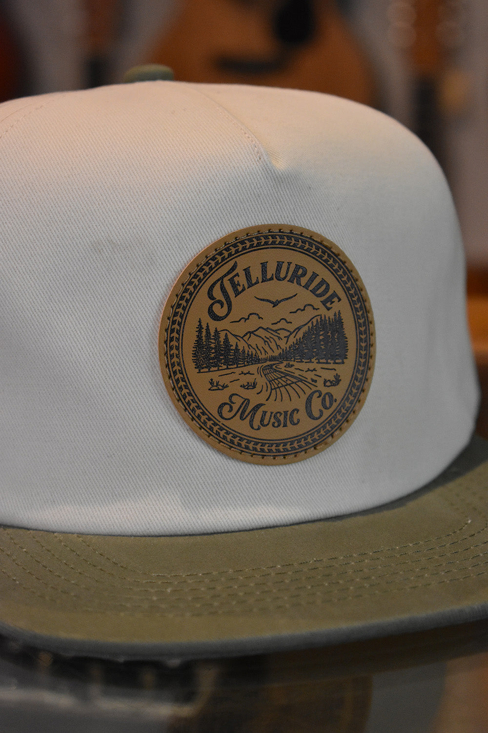 Featuring original artwork of the San Miguel River and the Telluride valley, this Limited Edition hat is a cotton-cavas two-tone design with a leather patch. White and Olive snapback. One size fits most, but these are on the bigger side for our hats. Good choice for larger domes.