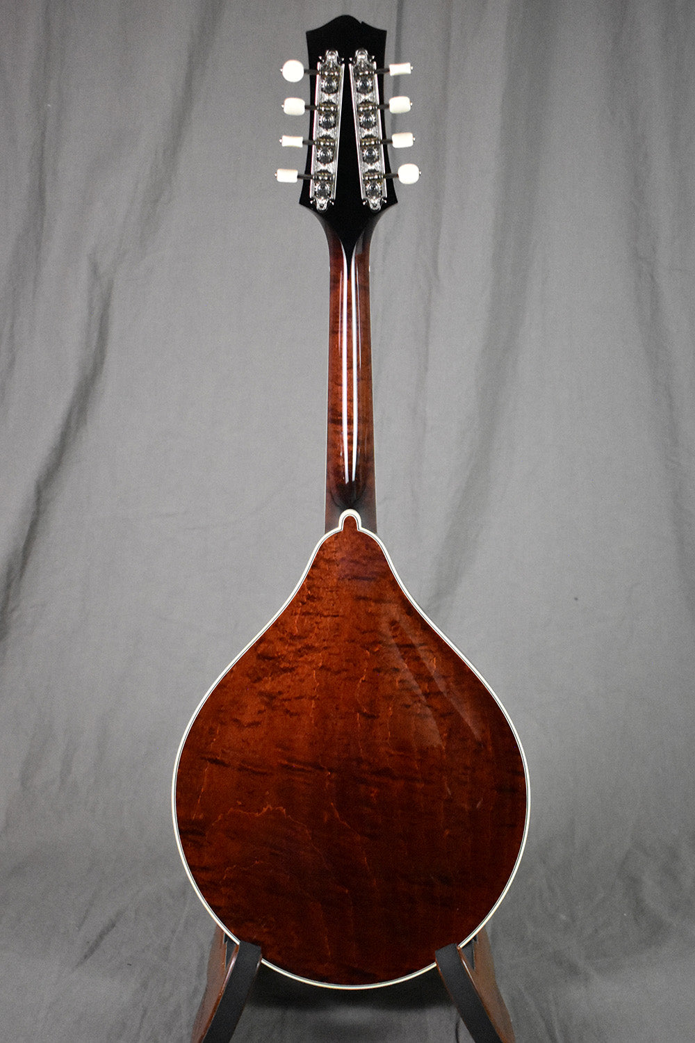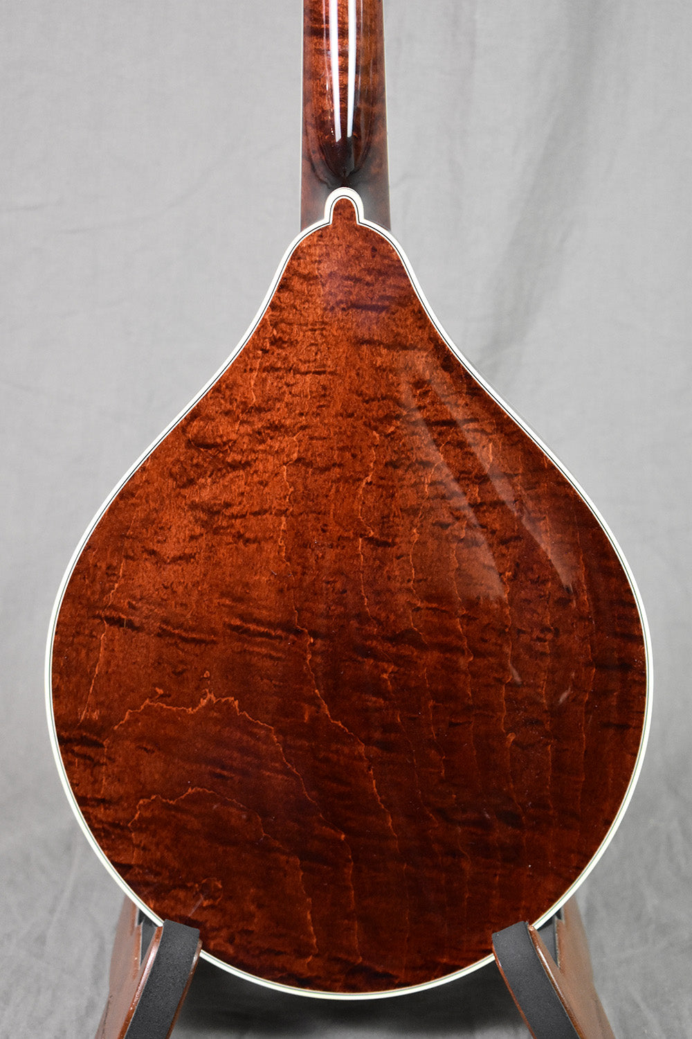 This Collings MT2 (#A4743) features an A-style design with a hand-carved Adirondack Spruce top and hand-carved Eastern Flame Maple back and sides. Relative to other varieties, Adirondack Spruce provides excellent clarity and focus with lots of projection and headroom. The top is hard-carved to its own unique thickness to maximize the potential of the instrument. While some MT2s have two-piece backs, this MT2 has a one-piece back. The result is a full, rounded sound with the sweeter, softer subtleties of an A-model mandolin.