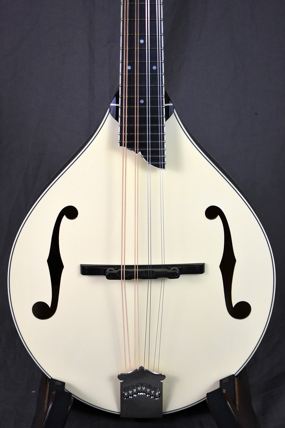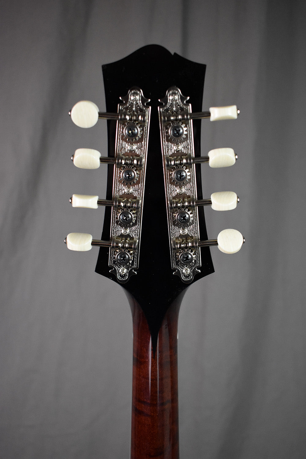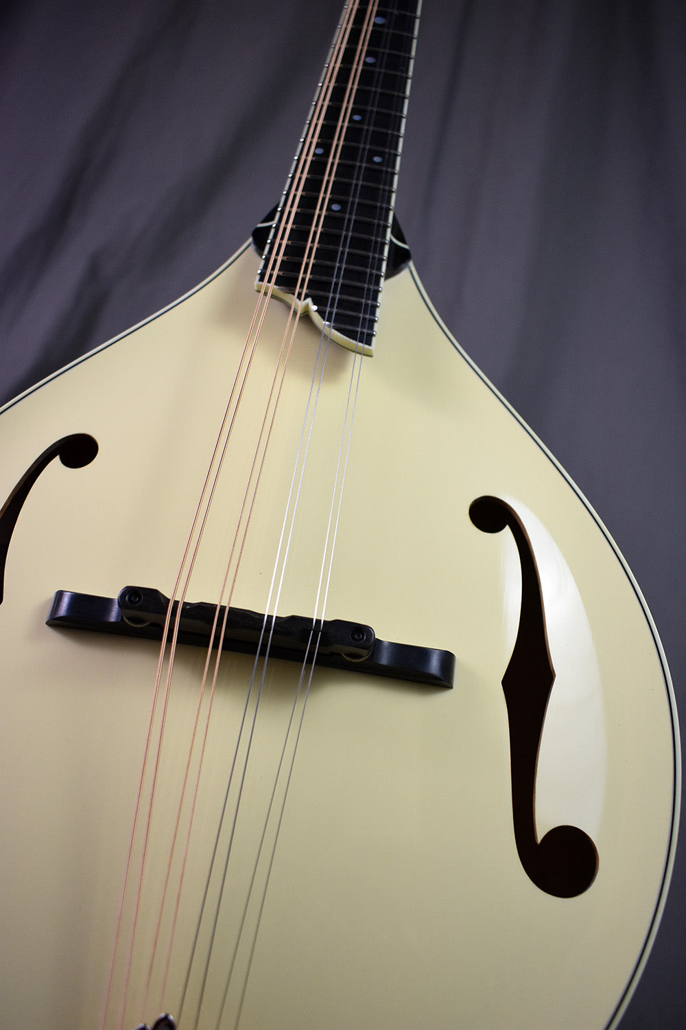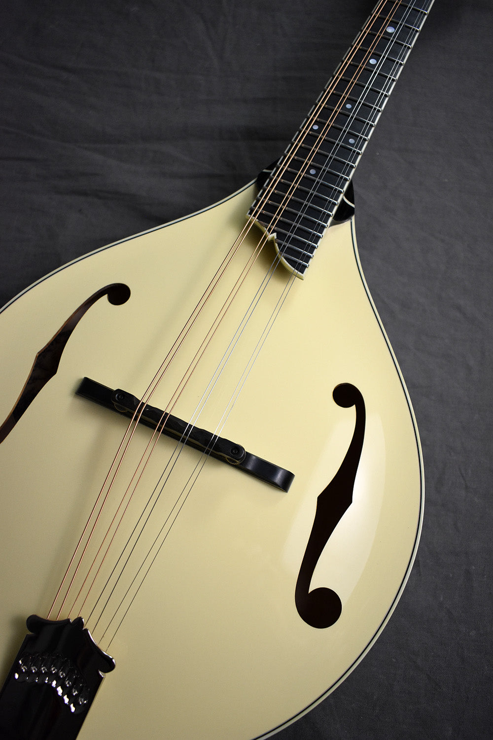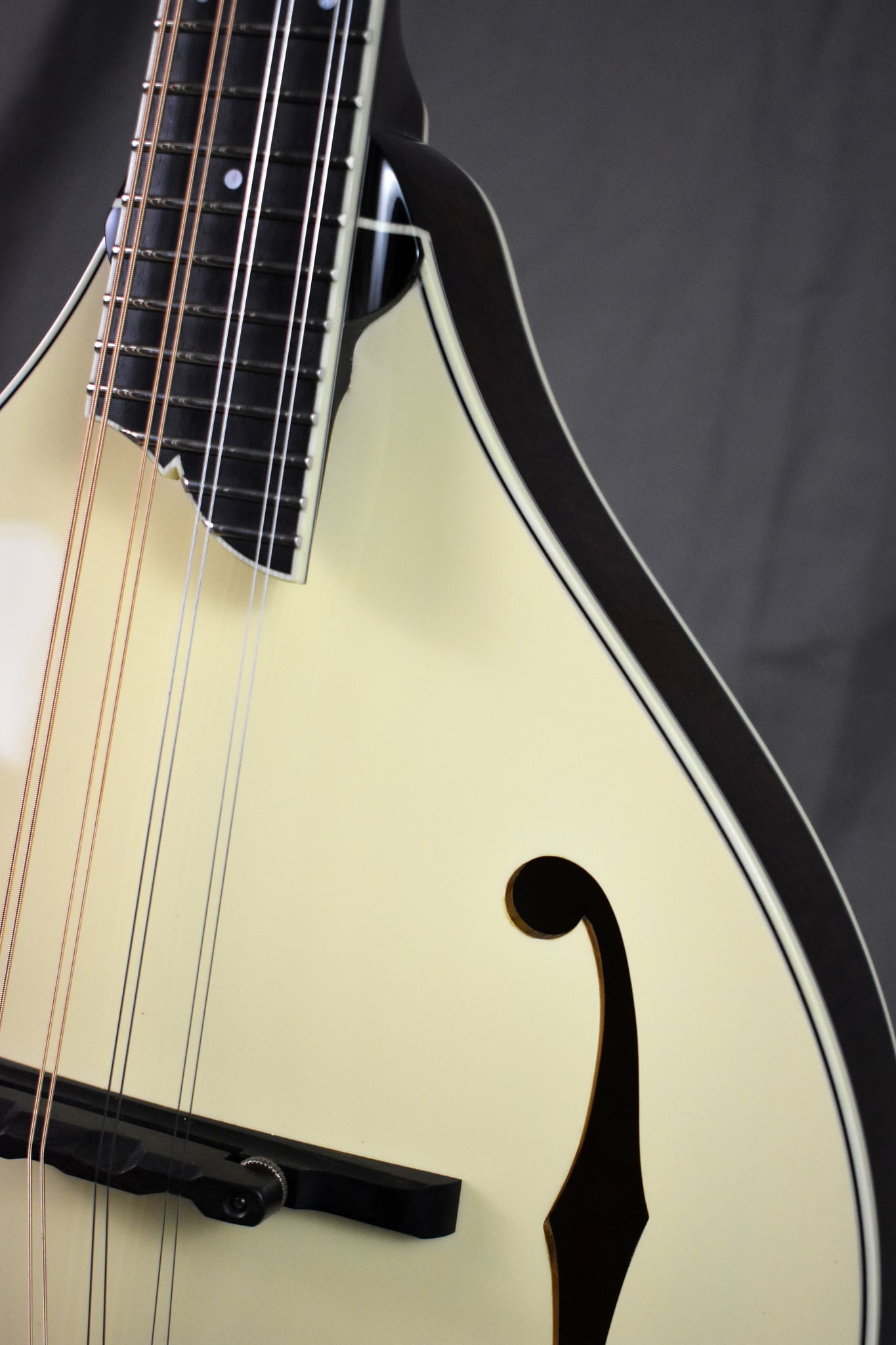 The MT2 is Collings' deluxe A-model, so it boasts elegant appointments, such as a Flourish peghead inlay, a high-gloss finish, and fancy binding around the edges. We ordered this one with a Cream Top finish and Red Stain back, sides, and neck. This is an elegant, high-end mandolin.