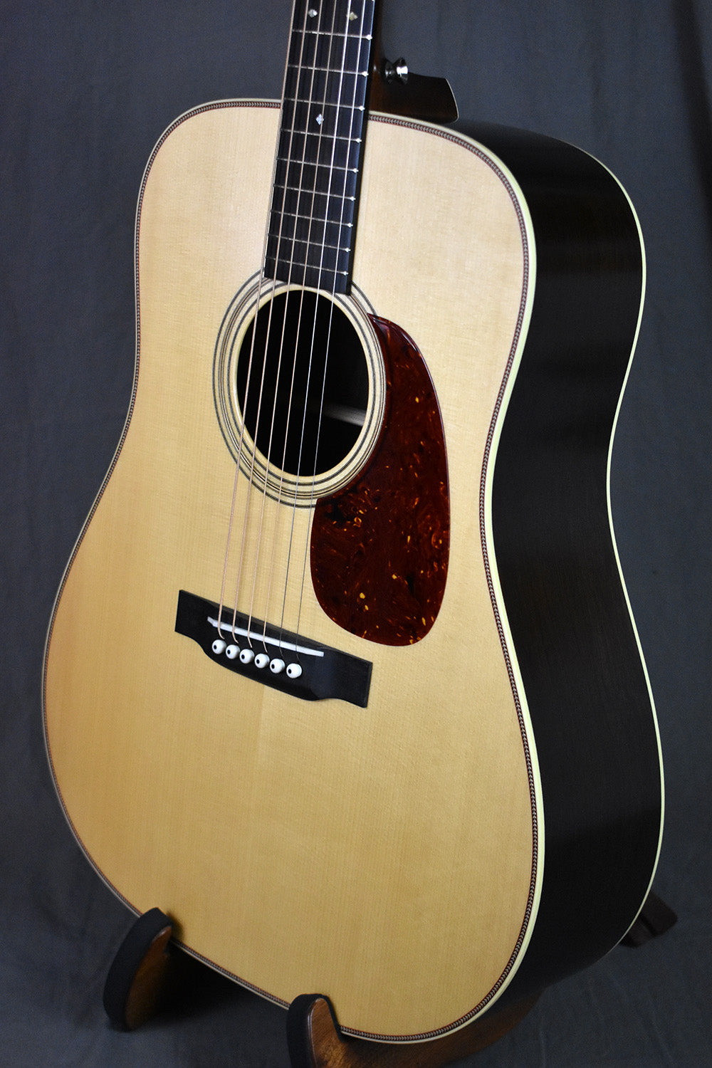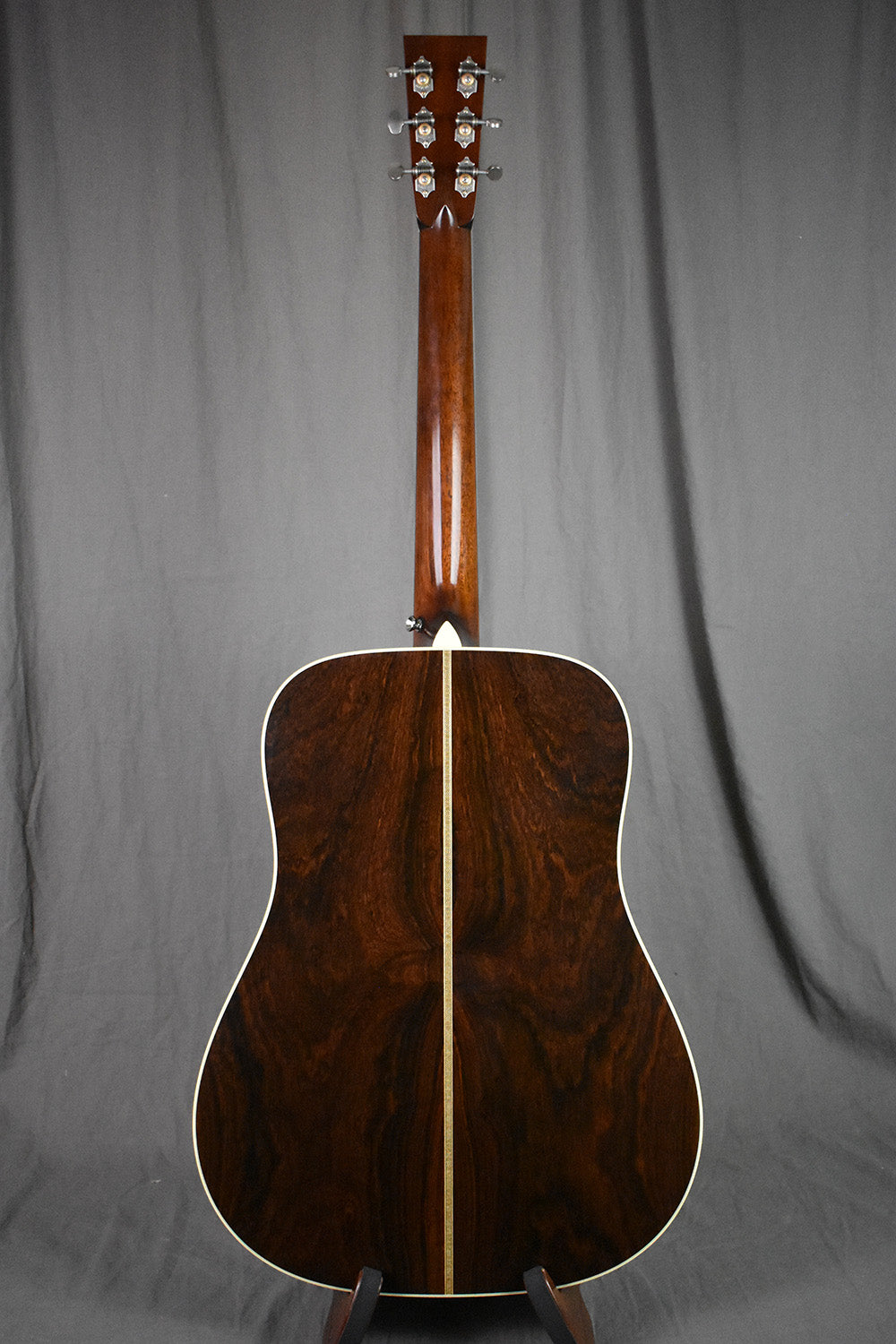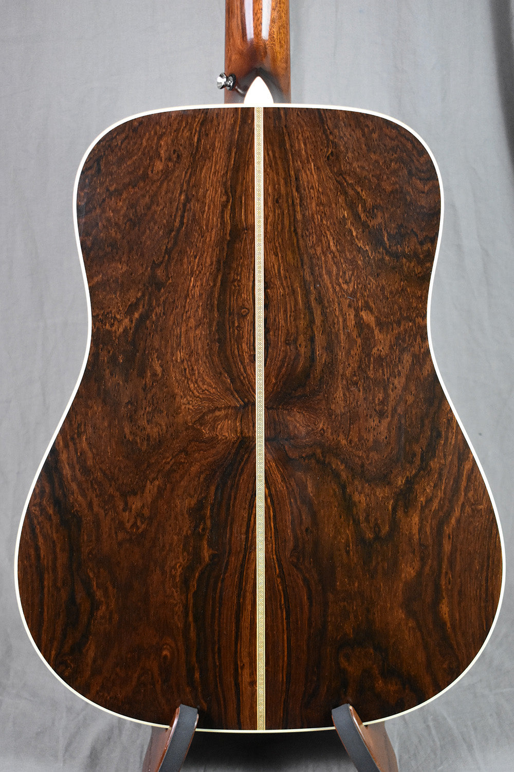 This 2024 D2H MR A T S pushes that concept to the limit with top-tier tone wood. Pairing Madagascar Rosewood back and sides with an Adirondack Spruce top, this D2H MR A T S produces intense, articulate tones that rival the refined prewar sound. Madagascar Rosewood offers deep, complex overtones and focused midrange presence similar to Brazilian, and the Madagascar used on this D2H shows stunning grain figure. Adirondack Spruce was the top wood used on all the iconic relics of the '30s, and it provides exceptional dynamic range and power. Together, these high-end woods yield a commanding yet refined dreadnought voice—rich, glassy highs over a full, articulate bass. The Traditional Satin finish complements the tone beautifully, enhancing resonance while giving the guitar a smooth, non-reflective feel under the hands.
