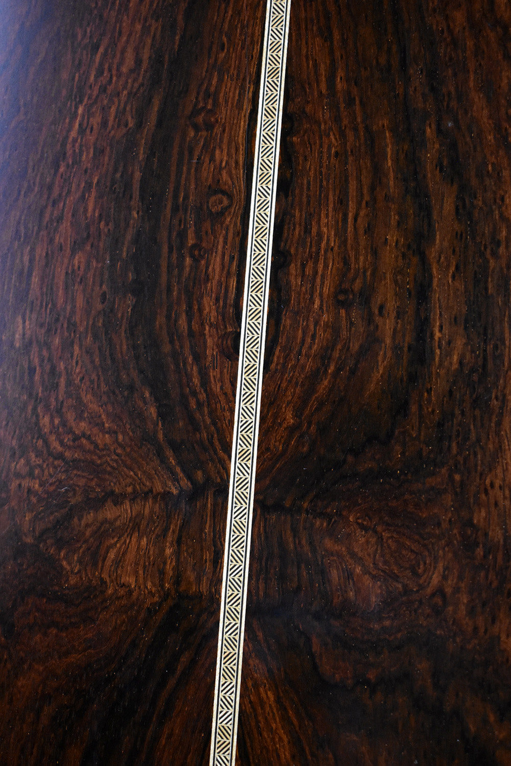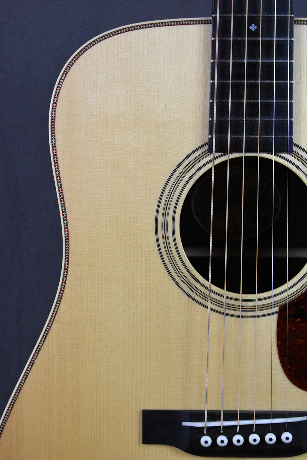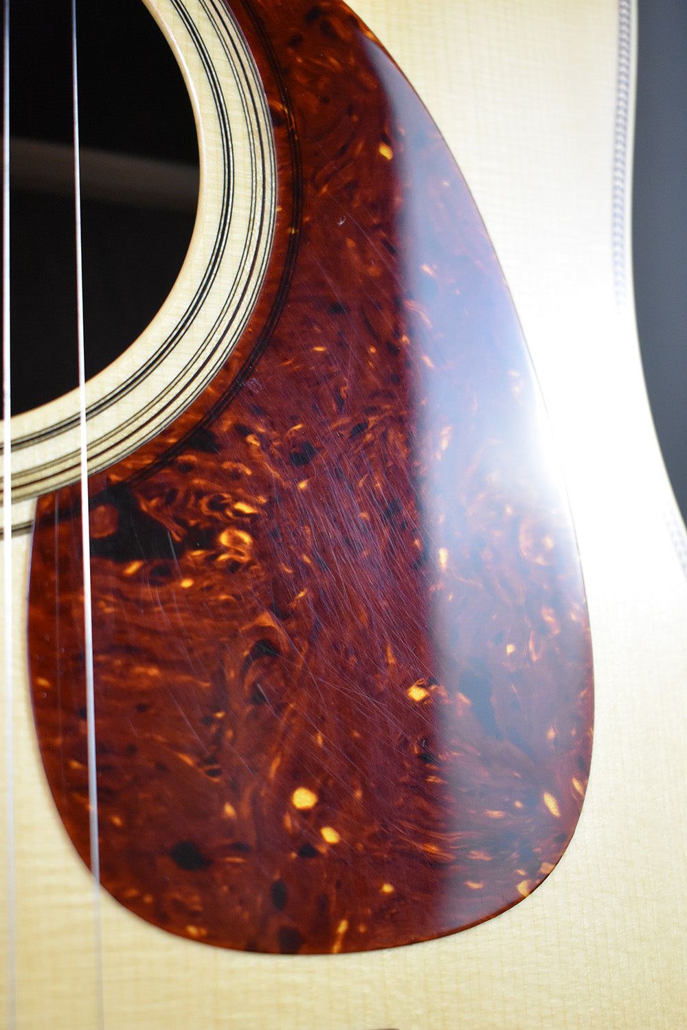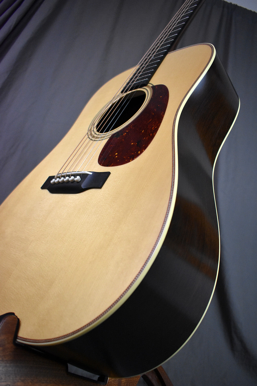 This 2024 D2H MR A T S pushes that concept to the limit with top-tier tone wood. Pairing Madagascar Rosewood back and sides with an Adirondack Spruce top, this D2H MR A T S produces intense, articulate tones that rival the refined prewar sound. Madagascar Rosewood offers deep, complex overtones and focused midrange presence similar to Brazilian, and the Madagascar used on this D2H shows stunning grain figure. Adirondack Spruce was the top wood used on all the iconic relics of the '30s, and it provides exceptional dynamic range and power. Together, these high-end woods yield a commanding yet refined dreadnought voice—rich, glassy highs over a full, articulate bass. The Traditional Satin finish complements the tone beautifully, enhancing resonance while giving the guitar a smooth, non-reflective feel under the hands.