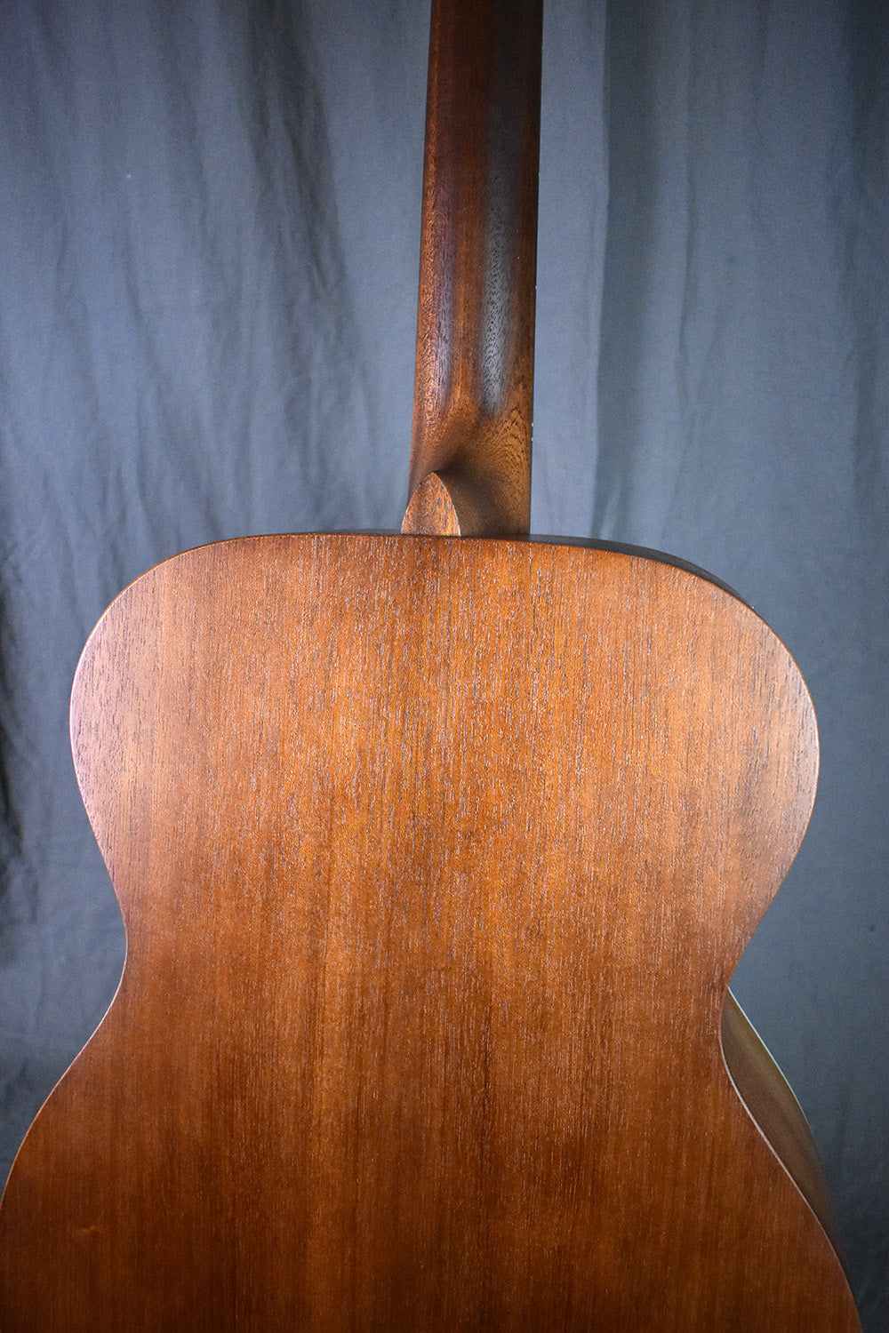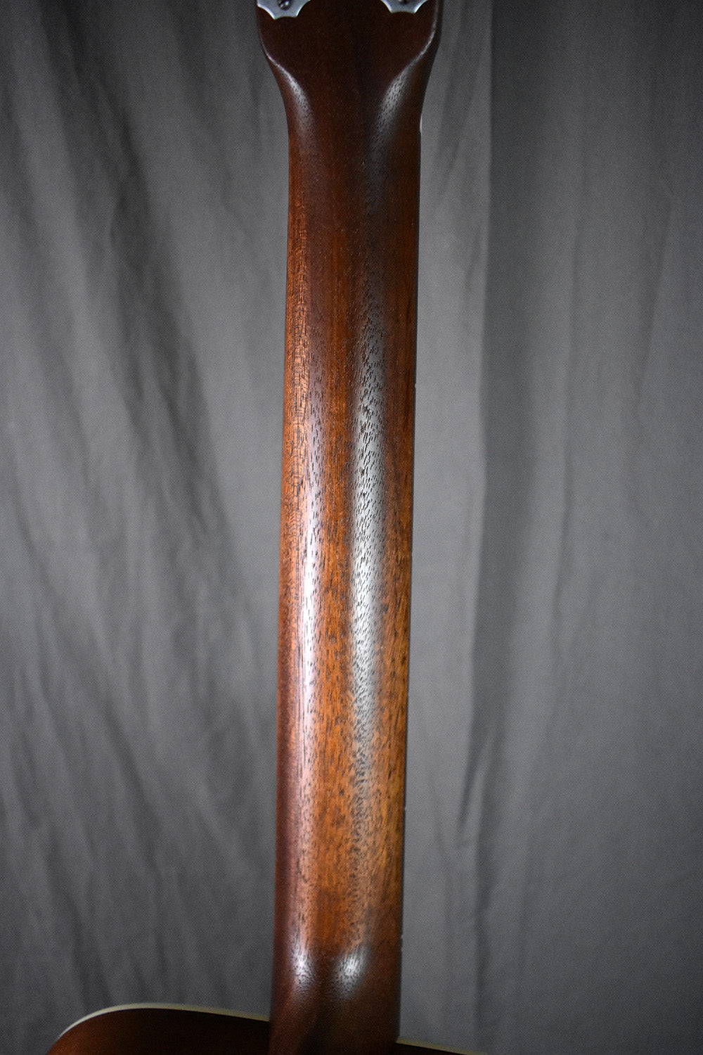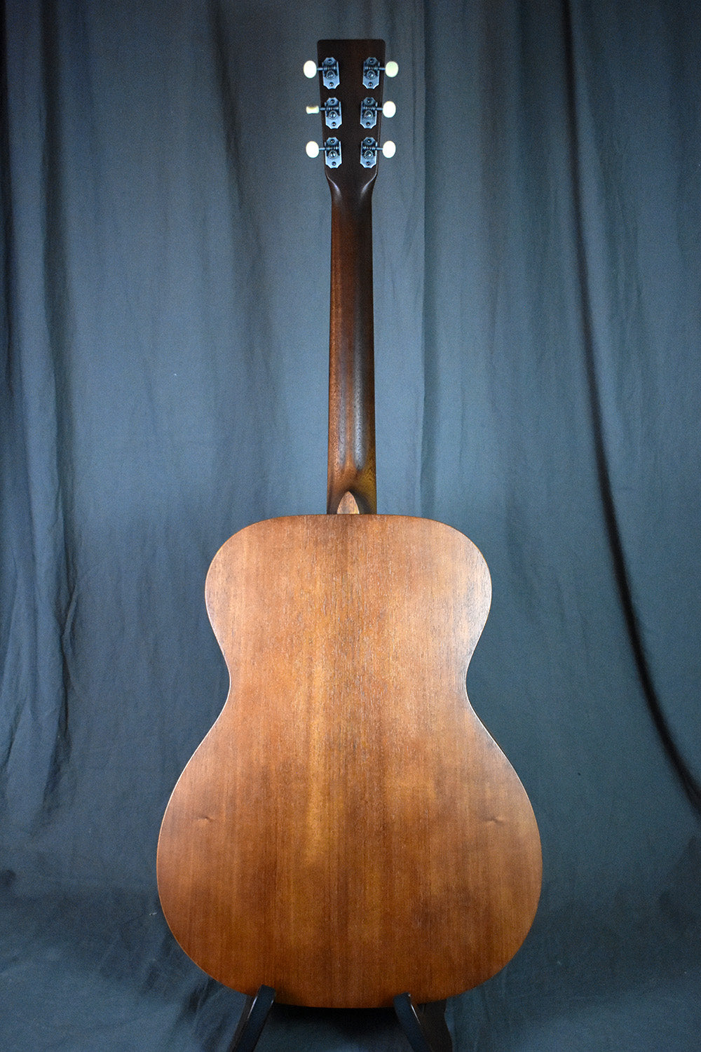 This 2024 Martin 000-17 is gently used and hardly shows any signs of wear. The factory protective film has been removed from the pickguard, but apart from that, it looks like this guitar has been played very little. The setup is exactly where we'd expect it to be from the factory—low and playable, but you can still dig into the bass notes without buzzing. The Modified Low Oval neck profile is smooth and fast, and although the guitar is still basically new, it's starting to capture some of that played-in Martin sound.