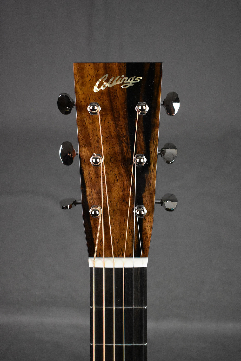 • Peghead Veneer: Stained exotic ebony with gold MOP Collings logo