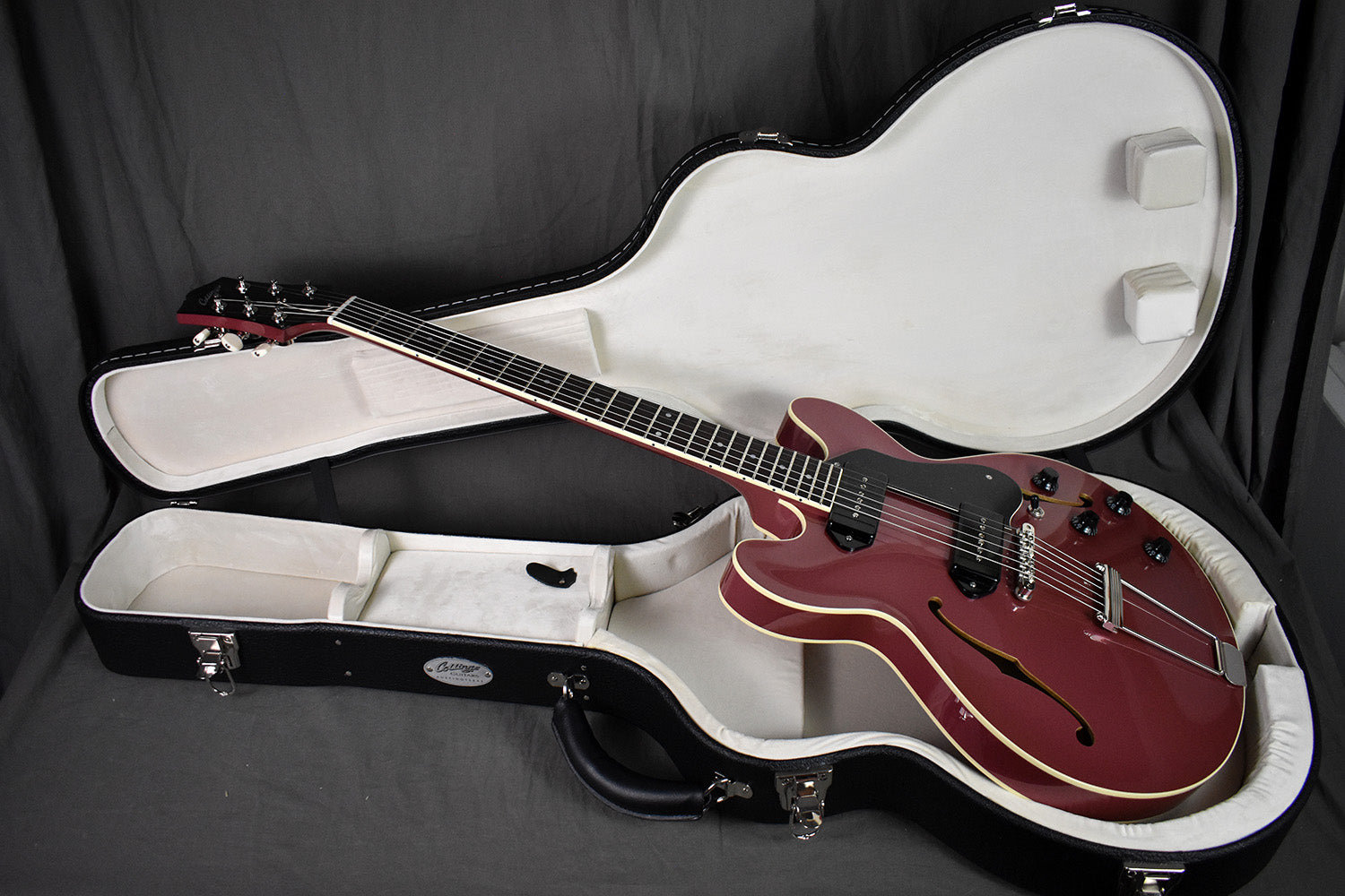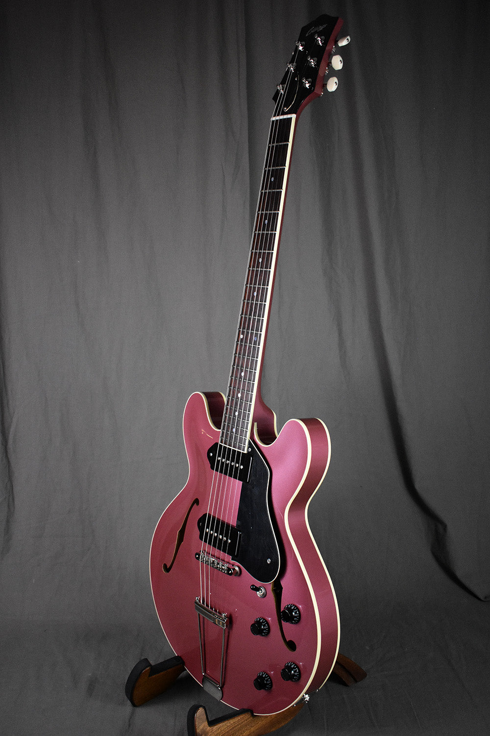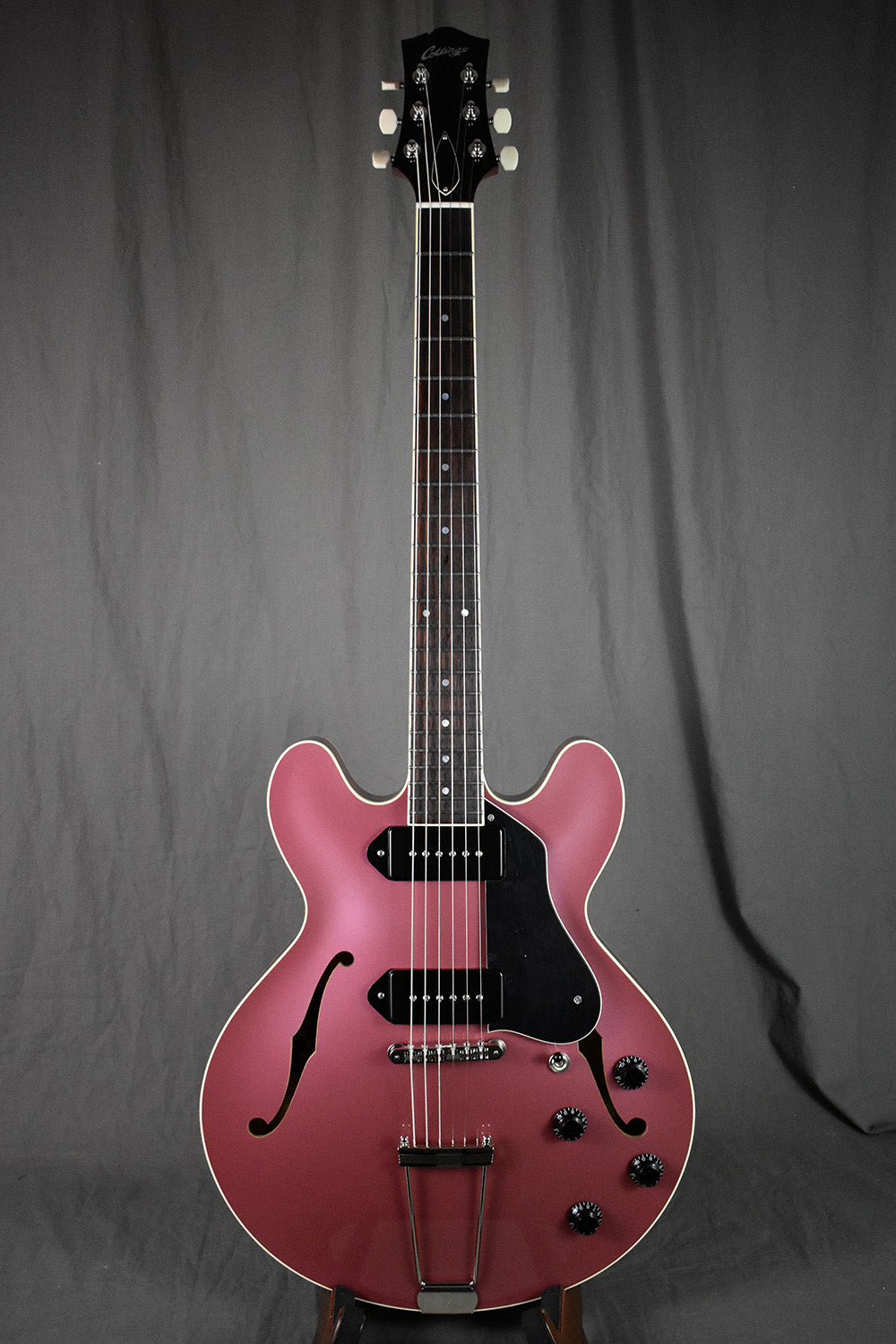 This I-30 LC (serial #25860) sports a gorgeous full-body Burgundy Mist finish, which is intense and has a striking three-dimensional quality. No one does finishes quite like Collings, and this Burgundy Mist is meticulous and impressive. For pickups, this one has upgraded ThroBak 55/56 Dogear P90s, which are a perfect match for the instrument's natural acoustic response. Plugged in, the Collings wiring harness delivers a wide palette of tones, and the balance between positions is remarkable. Every setting of the volume and tone controls is usable in its own way. Combined with a touch-sensitive, resonant hollowbody feel, the I-30 LC is a next level guitar experience.