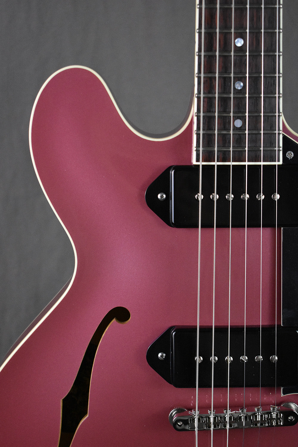 - Finish: Full-Body Burgundy Mist Nitrocellulose Lacquer