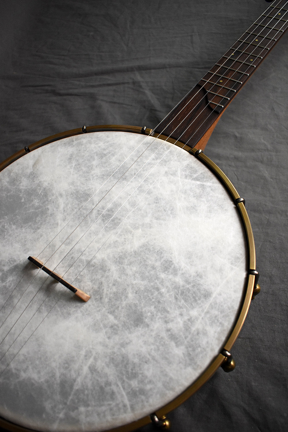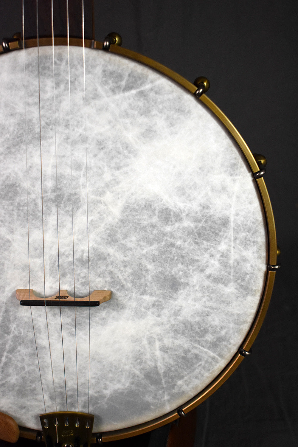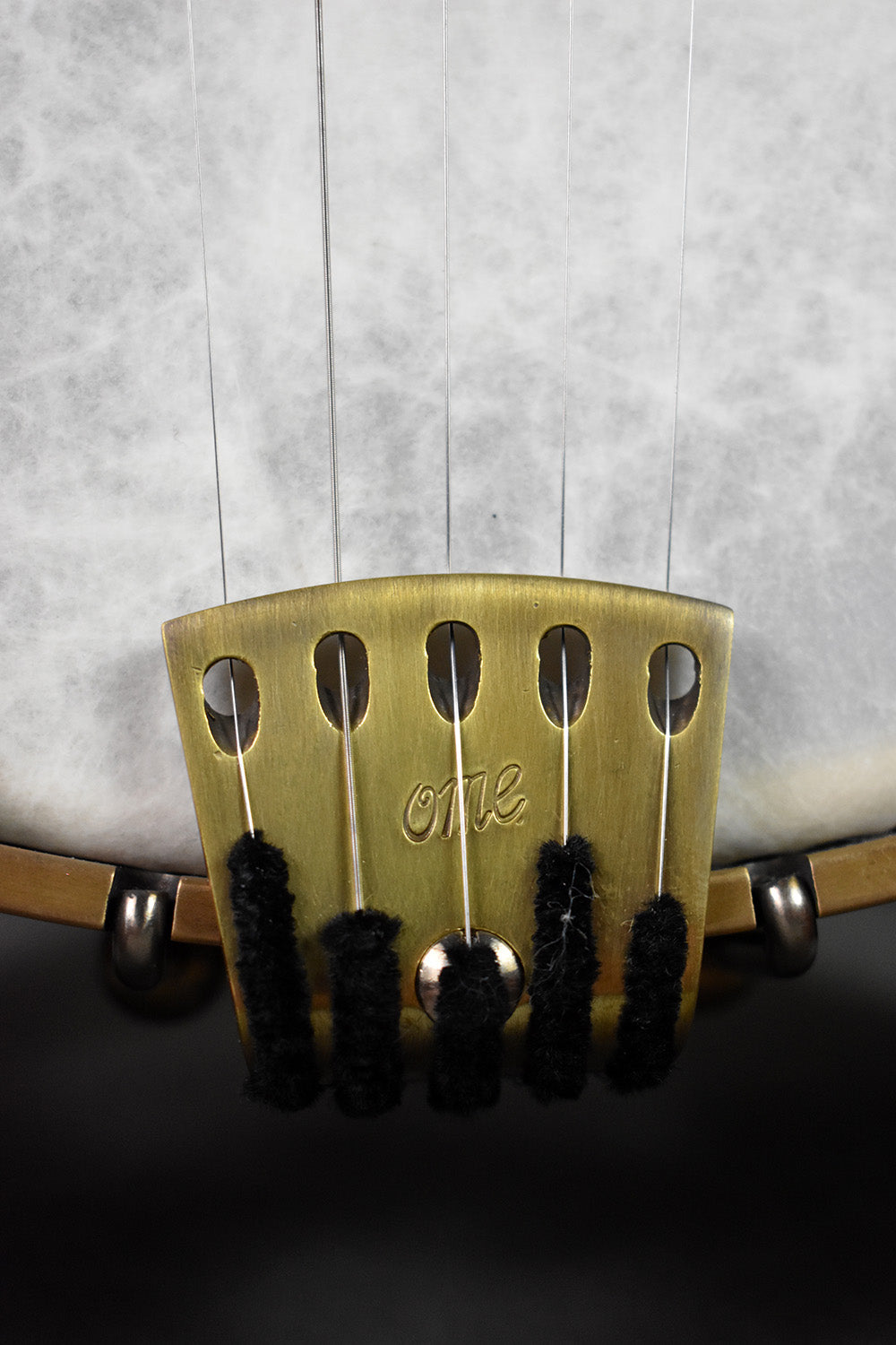 Every detail is carefully considered—from the ebony-capped heel and custom 5/8" OME bridge to the aged brass hardware, Sweetone tailpiece, Ebonite rim cap, and ergonomic wooden armrest. For greater projection and treble content, we ordered this Tupelo with a Rolled Brass tone ring. In your hands, the Tupelo feels like a formidable tool, but also an heirloom-quality instrument drawing inspiration from the finest prewar open-back banjos.