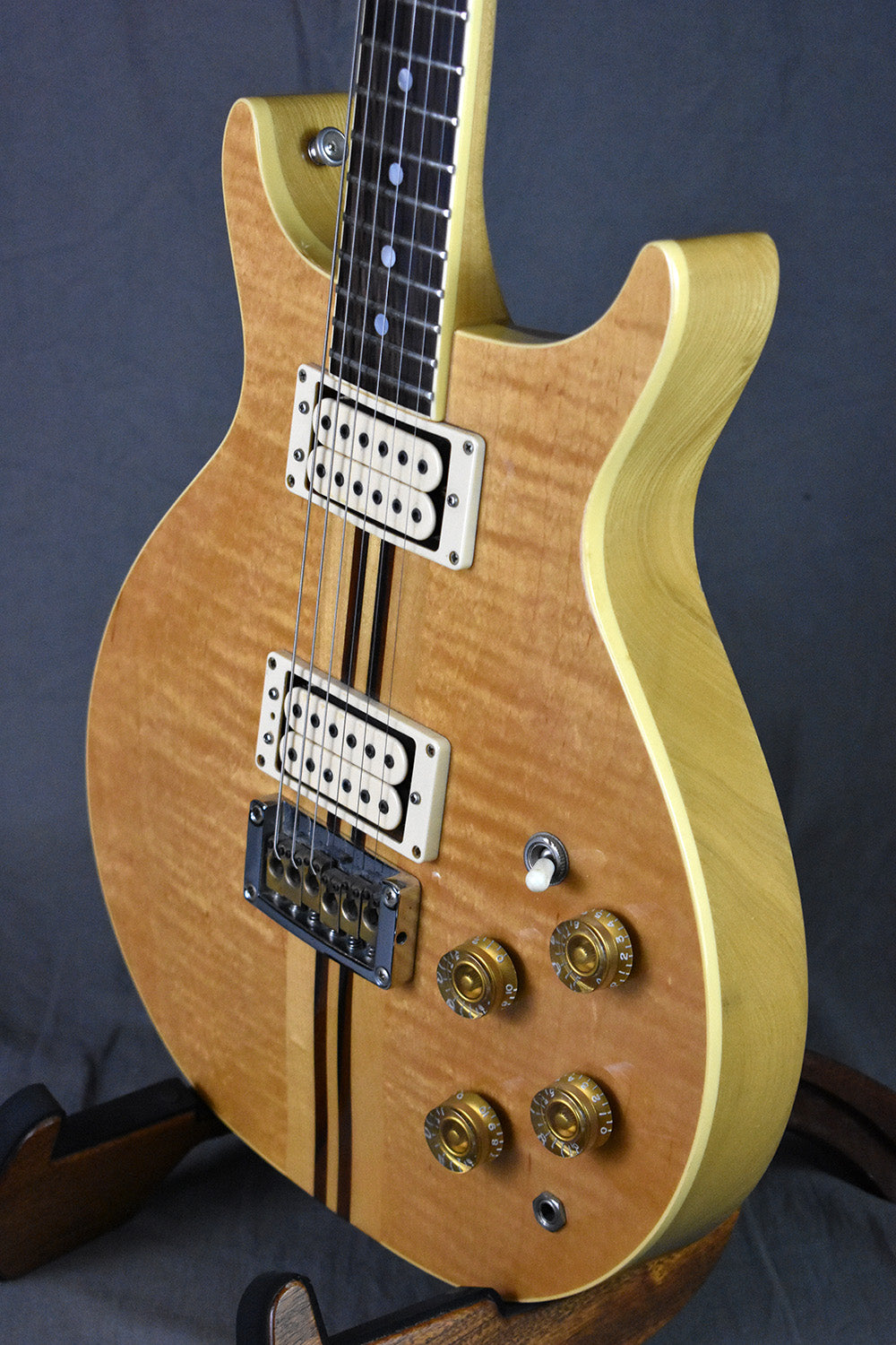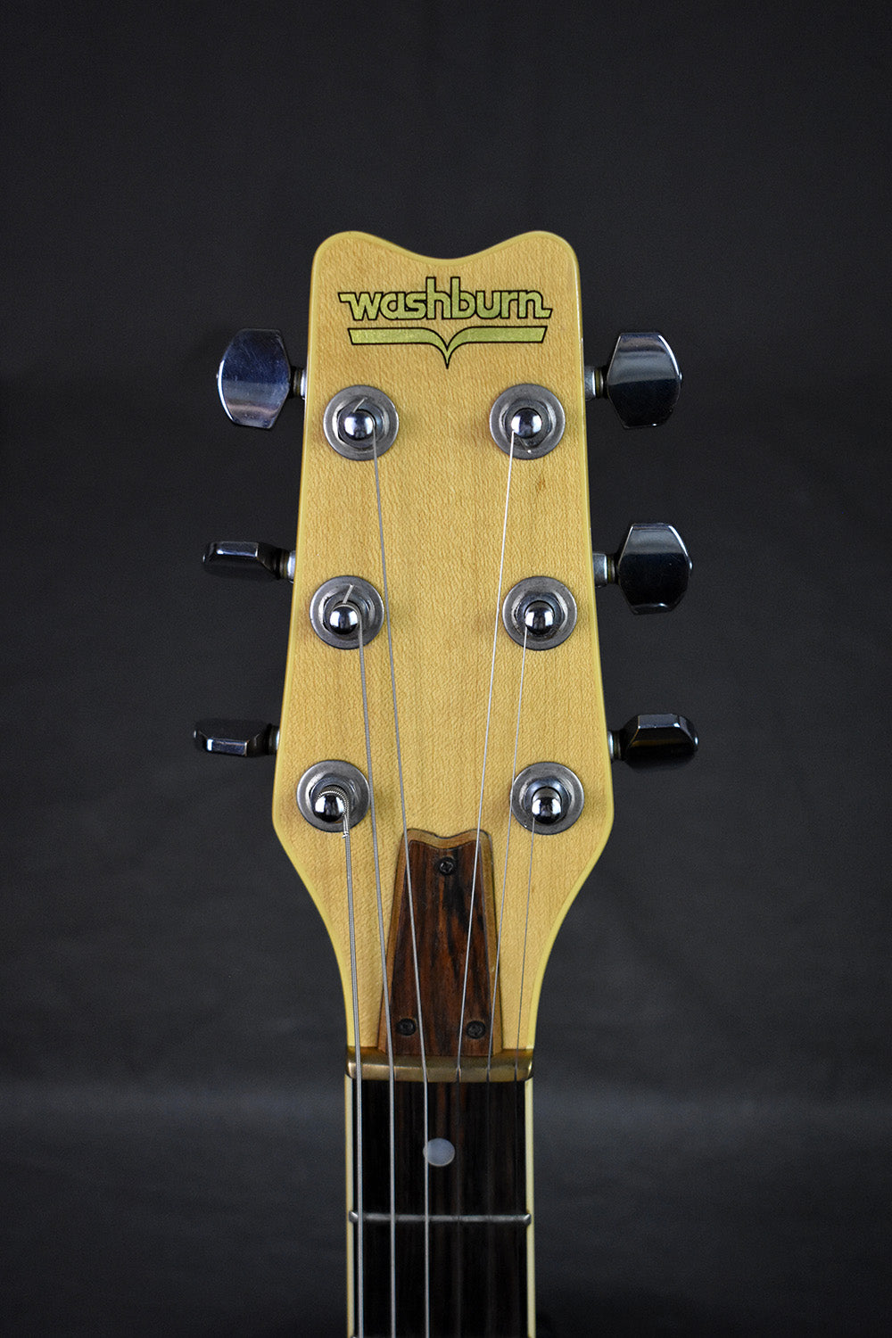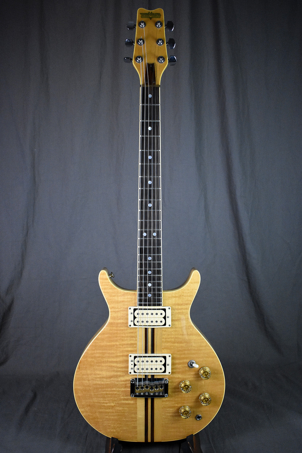 Matsumoku started building the Washburn-branded Wing Series in 1978, and the Falcon was part of the core lineup. Featuring a small double-cutaway body, the Falcon is most notable for its through-body neck design. This 1979 Washburn Falcon sports a natural finish that shows off the high-level workmanship, clearing displaying the many pieces of wood that came together to into one seriously cool carved-top guitar. When you flip it over, the contoured neck heel provides a unique access into the upper register. At the time it was made, this carved-out heel would've been unlike anything else you would've seen at the guitar shop–certainly a strong selling point for the Washburn brand!