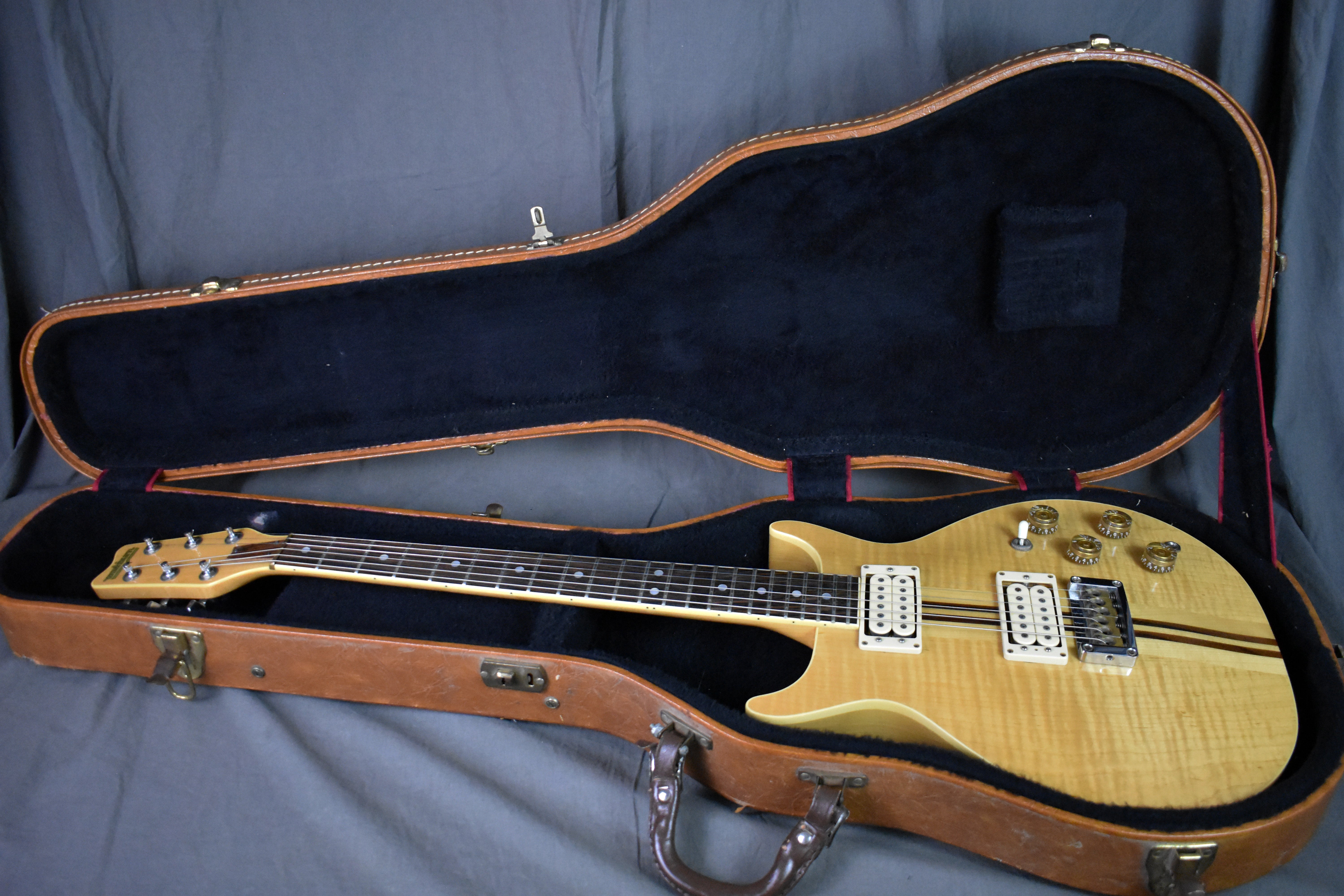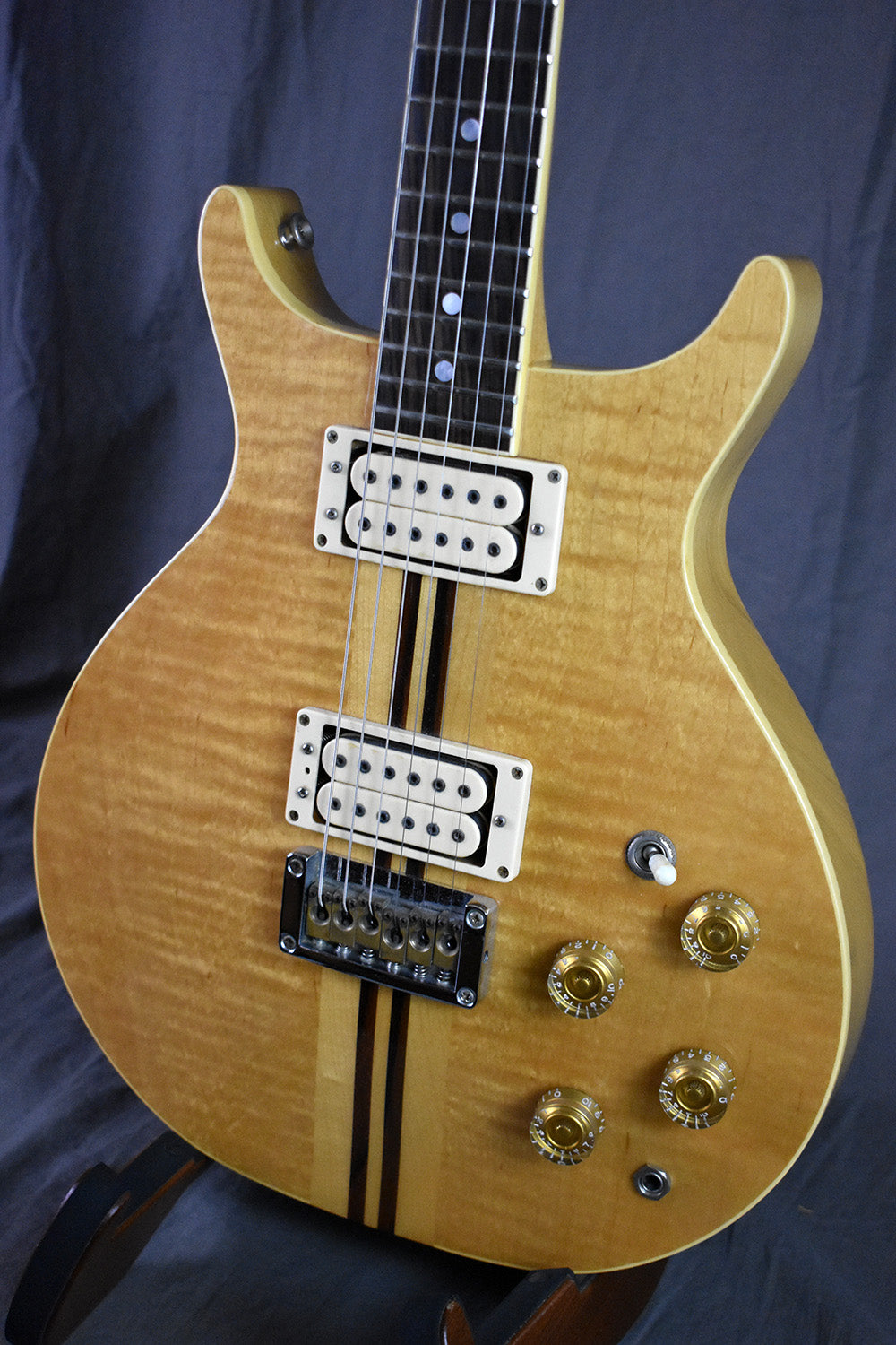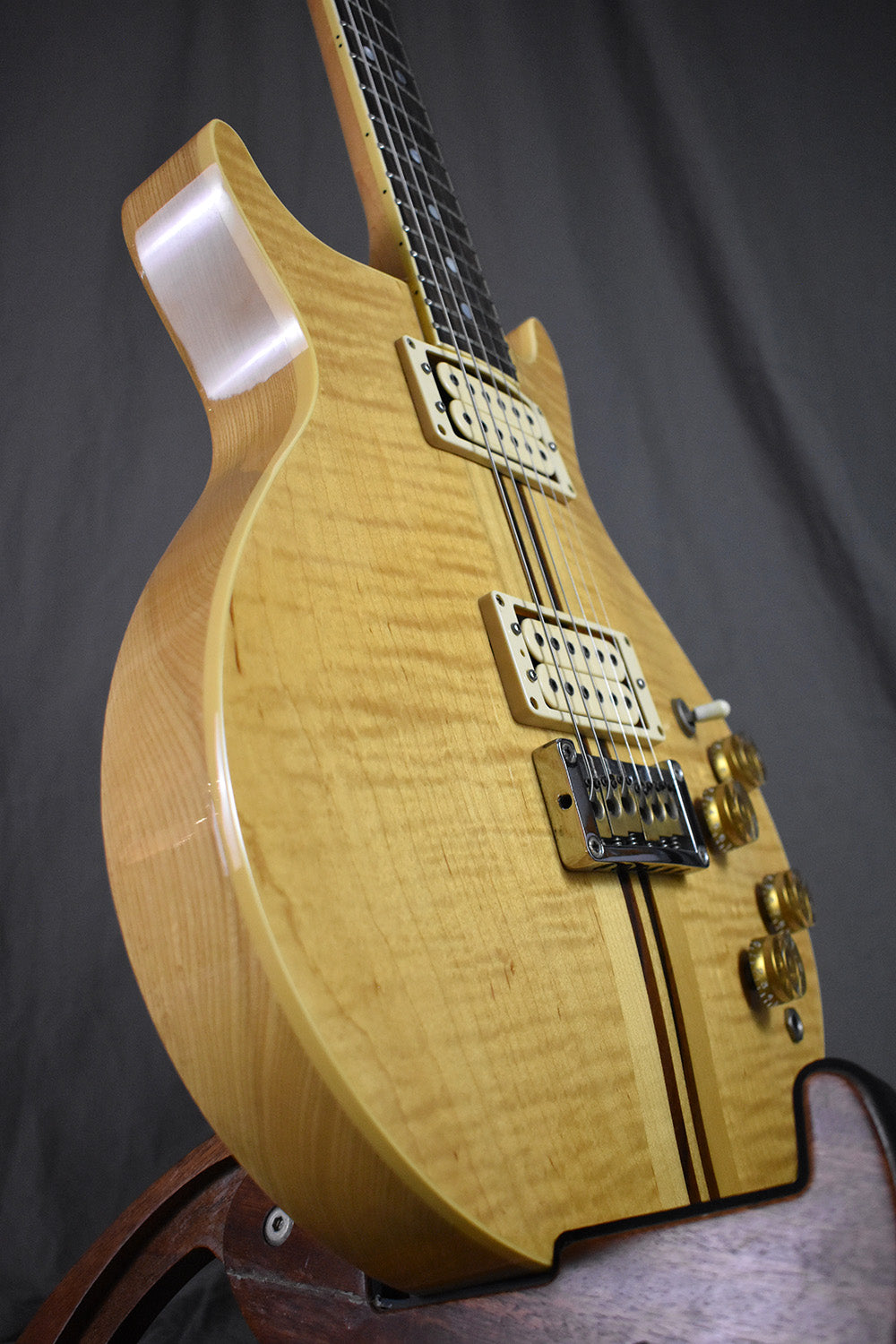 Matsumoku started building the Washburn-branded Wing Series in 1978, and the Falcon was part of the core lineup. Featuring a small double-cutaway body, the Falcon is most notable for its through-body neck design. This 1979 Washburn Falcon sports a natural finish that shows off the high-level workmanship, clearing displaying the many pieces of wood that came together to into one seriously cool carved-top guitar. When you flip it over, the contoured neck heel provides a unique access into the upper register. At the time it was made, this carved-out heel would've been unlike anything else you would've seen at the guitar shop–certainly a strong selling point for the Washburn brand!