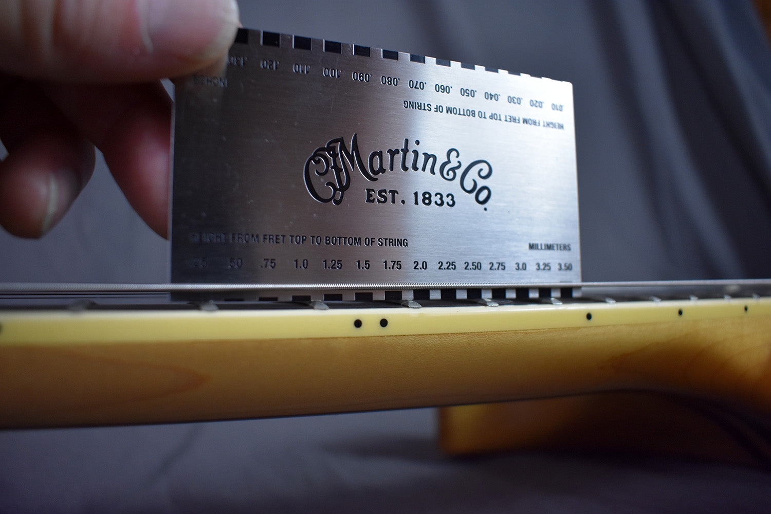From there, this Washburn Falcon is equipped with two hot humbuckers that both measure 8.45 k ohms. Three-way switch, volume and tone controls for each pickup, and both can be coil-tapped for a single-coil sound. It's a string-through body, and the six saddle bridge has brass saddles to match the 1-5/8" brass nut. It has a fast-feeling neck and narrow taper than encourages you to step into the upper register where the unique heel carve makes it easy on you.