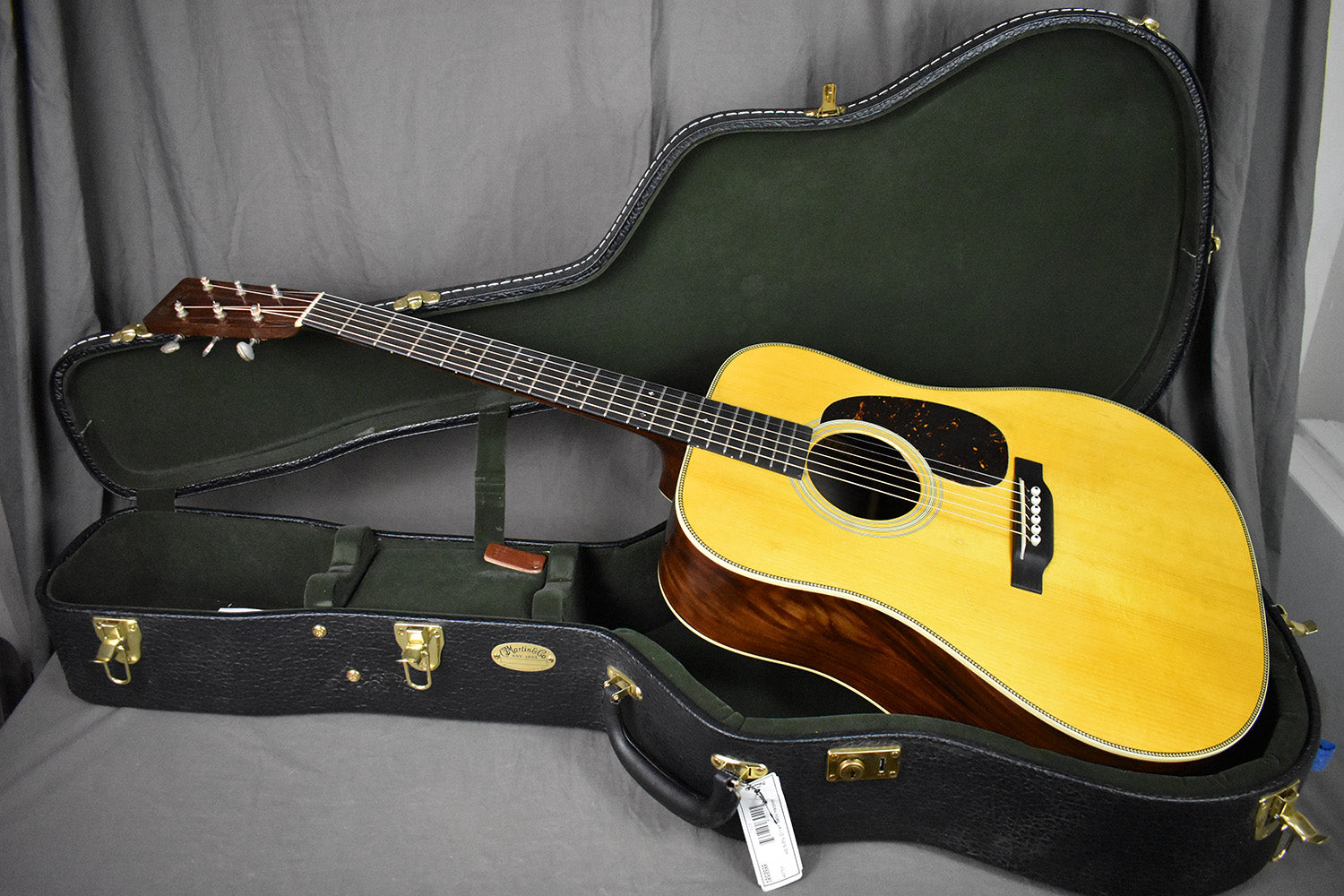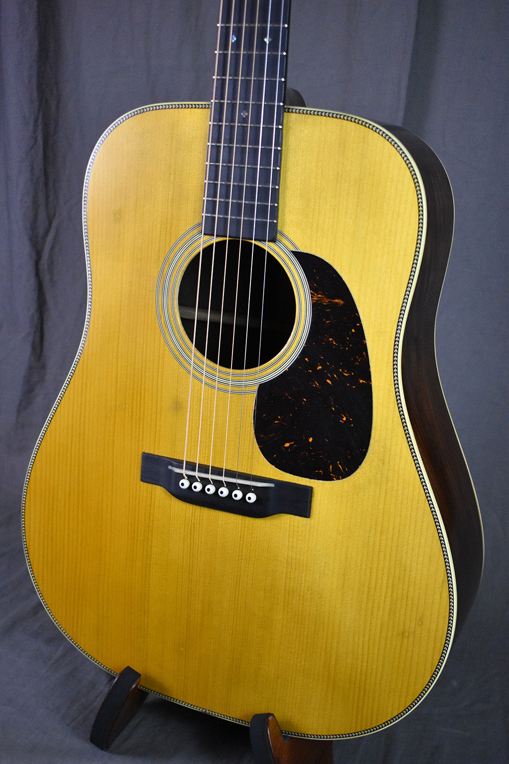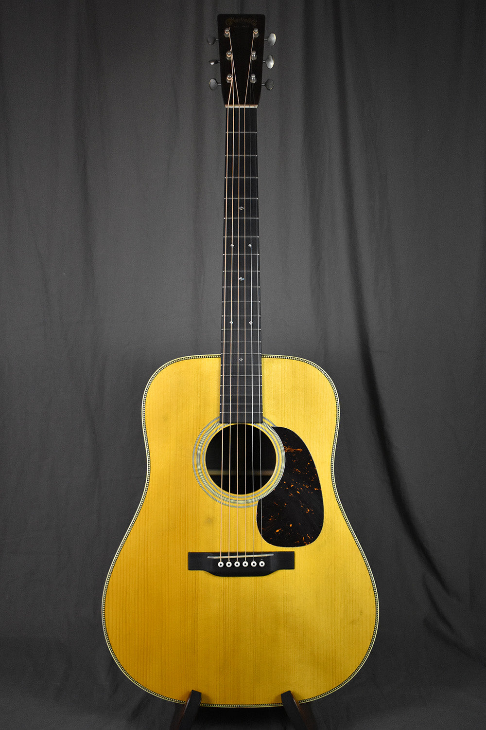 For a recently built guitar, this D-28 Authentic produces a rich, nuanced voice that is everything you could ask for from a rosewood dreadnought. It is powerful and responsive, yet detailed, clear, and articulate. With its forward-shifted bracing, it explodes with a flatpick but responds just as gracefully to a lighter touch. The D-28 is considered a superlative acoustic guitar, and this one demonstrates why. The Aged finish lets you have a vibe and character of a Golden Era Martin, but with the playability and functionality provided by modern-day precision.