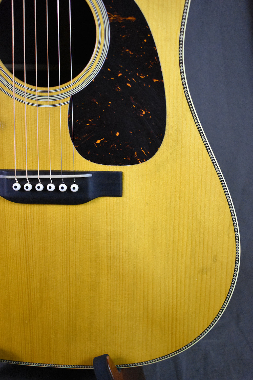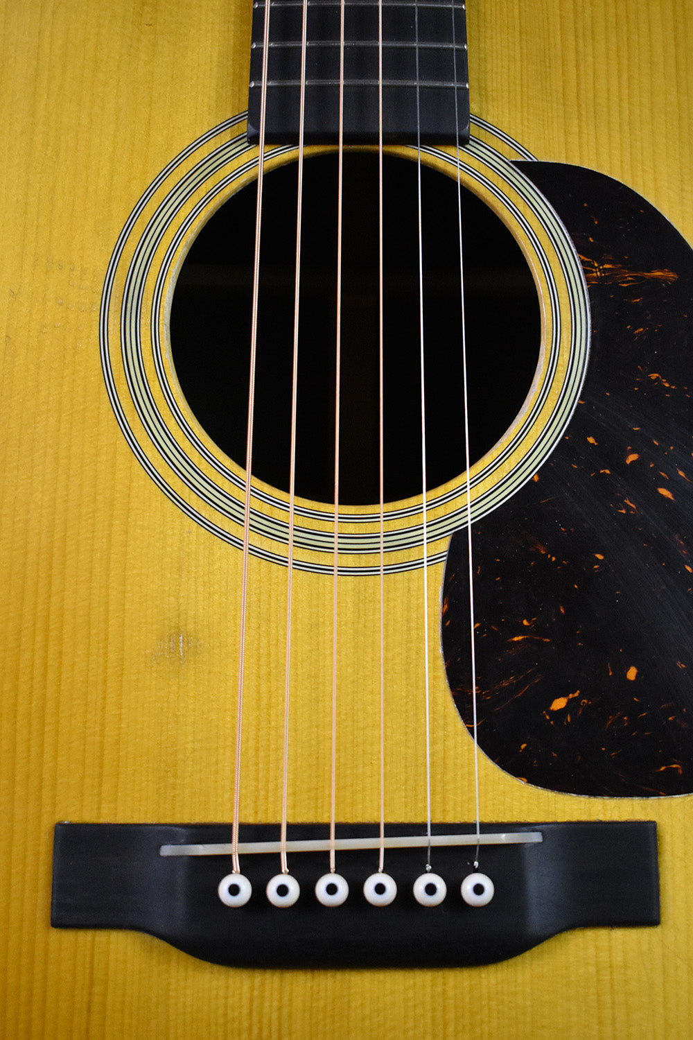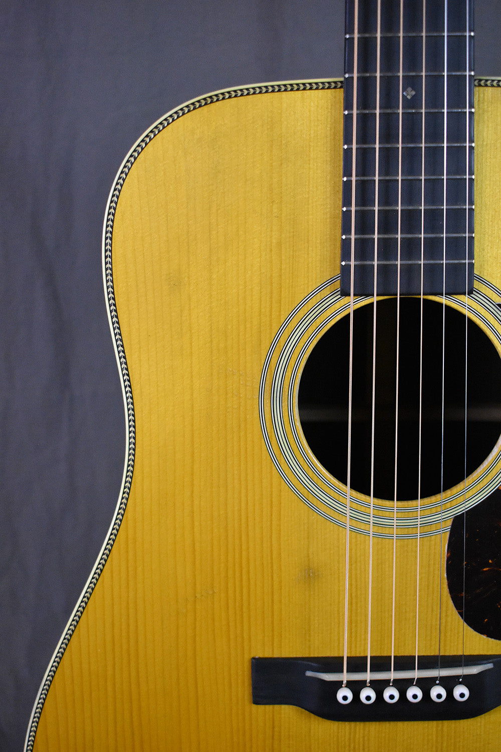 For a recently built guitar, this D-28 Authentic produces a rich, nuanced voice that is everything you could ask for from a rosewood dreadnought. It is powerful and responsive, yet detailed, clear, and articulate. With its forward-shifted bracing, it explodes with a flatpick but responds just as gracefully to a lighter touch. The D-28 is considered a superlative acoustic guitar, and this one demonstrates why. The Aged finish lets you have a vibe and character of a Golden Era Martin, but with the playability and functionality provided by modern-day precision.