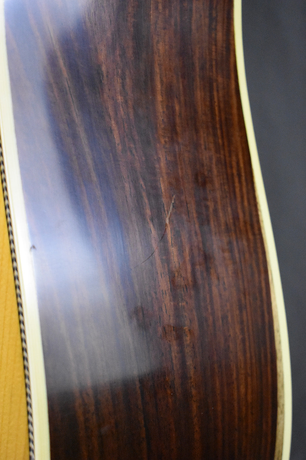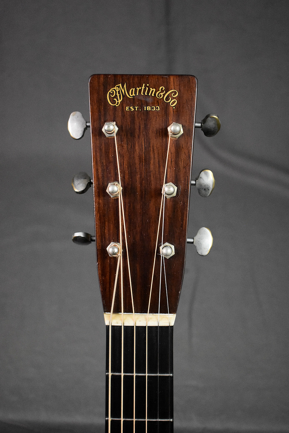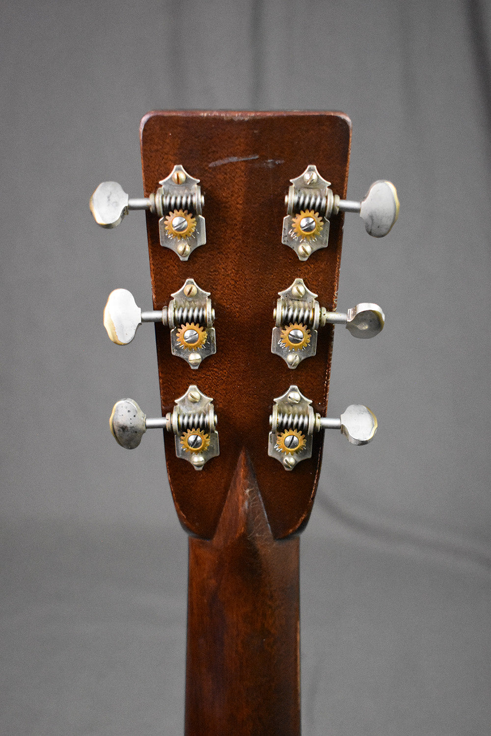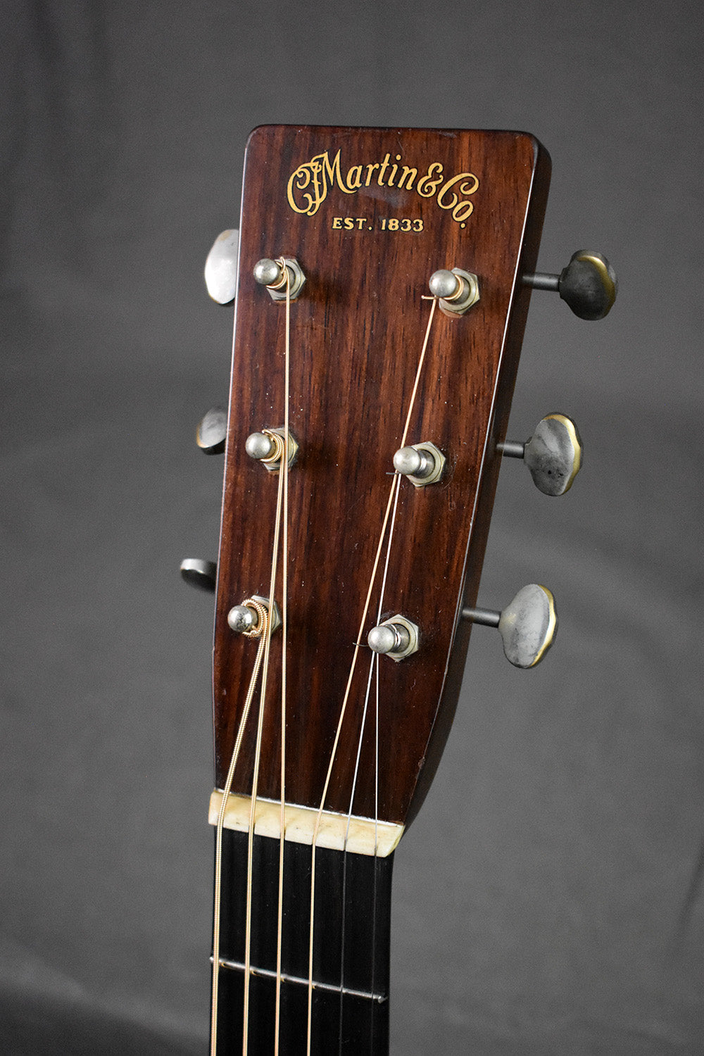 Widely regarded as the pinnacle year for Martin dreadnoughts—especially the D-28—1937 represents the perfect balance of construction features that defined the pre-war "golden era." By this time, Martin had refined its forward-shifted scalloped X-bracing pattern, giving the top more freedom to vibrate and produce unmatched power, clarity, and responsiveness. The necks featured a 1-3/4" nut width paired with a more approachable rounded “barrel and heel” profile, making them more comfortable to play compared to earlier designs. Combined with Adirondack spruce tops, Brazilian rosewood back and sides, and hide-glue construction, the 1937 D-28s deliver exceptional projection, dynamic range, and tonal complexity—qualities that have made them the most coveted examples of Martin’s craft.