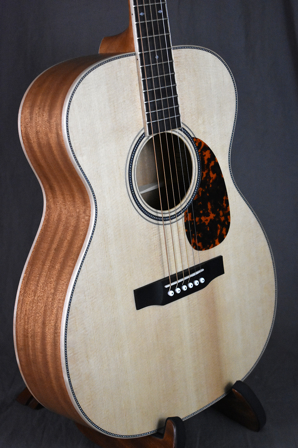Built in Oxnard, California earlier this year, this 2025 OM-40 represents Larrivée’s “Legacy Series” approach—all-solid tonewoods, refined craftsmanship, and a stripped-down aesthetic that focuses on tone and playability instead of flashy details. This 2025 OM-40 features a Sitka spruce top with Mahogany back and sides, finished in a smooth satin lacquer that feels fast and organic under the hands. The OM body shape offers a perfect balance between clarity and warmth, and this OM-40 has crisp articulation and strong midrange presence. It’s a responsive guitar with a quick, clean attack and a reasonable amount of volume, making it equally suited for flatpicking, fingerstyle, or vocal accompaniment.