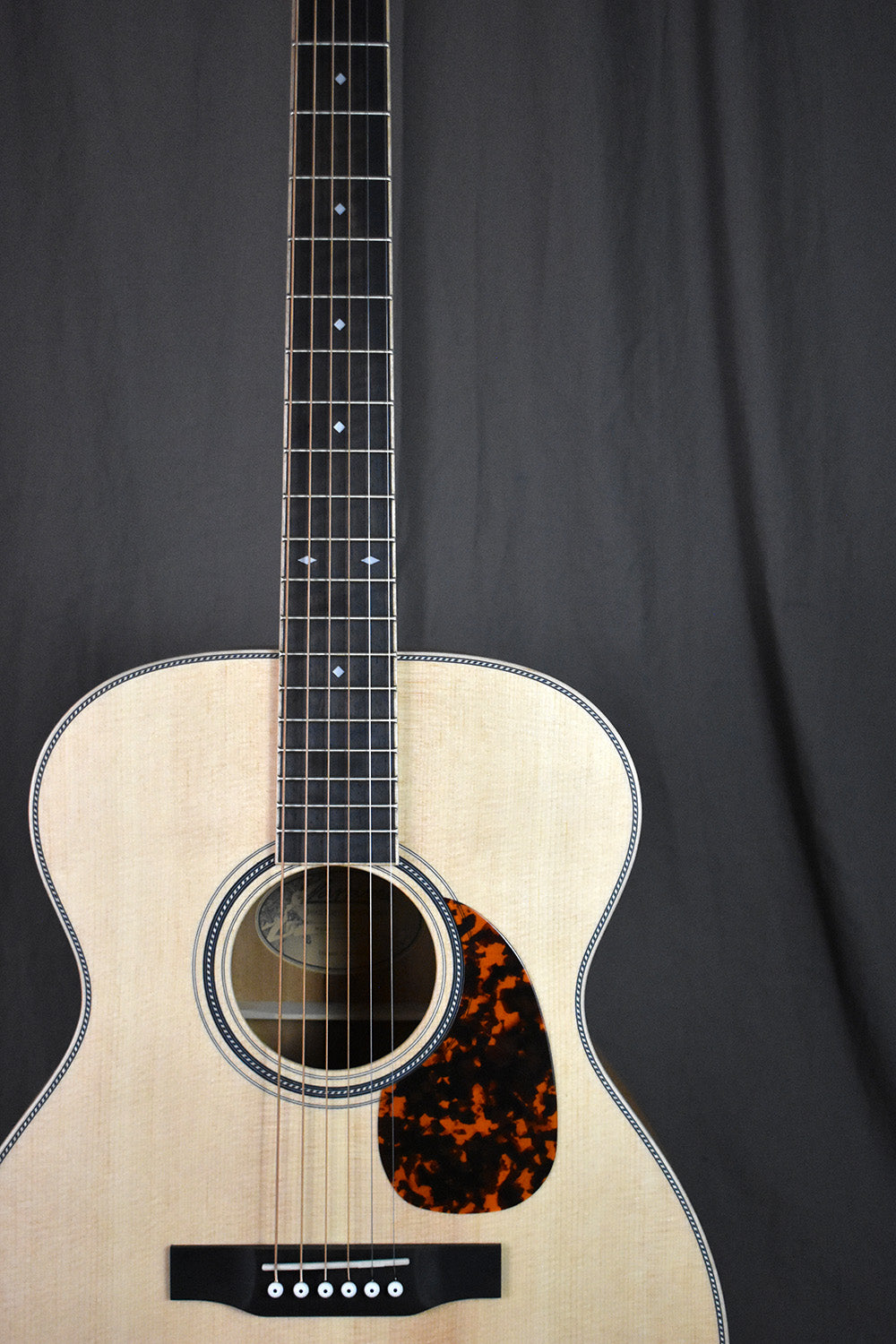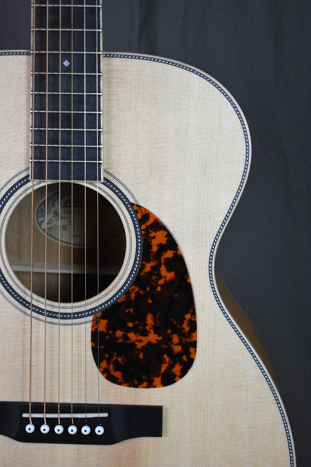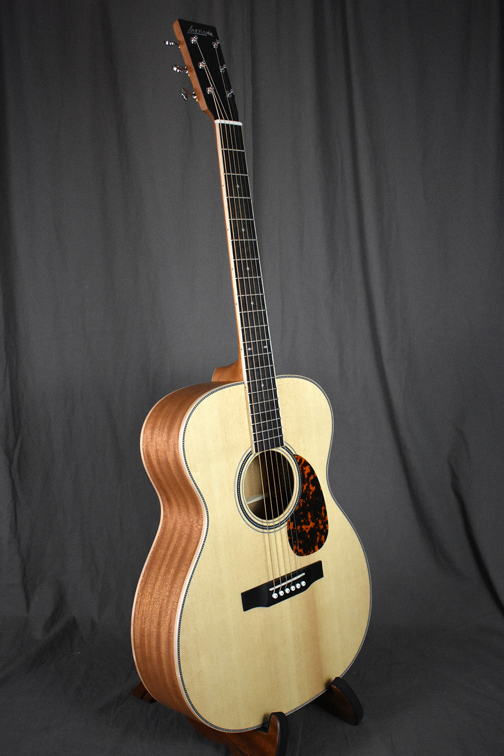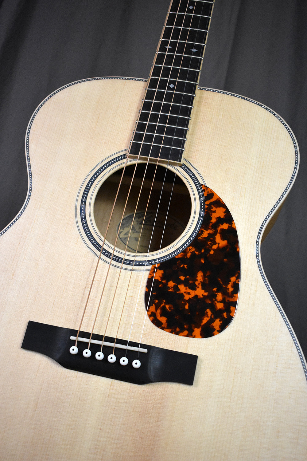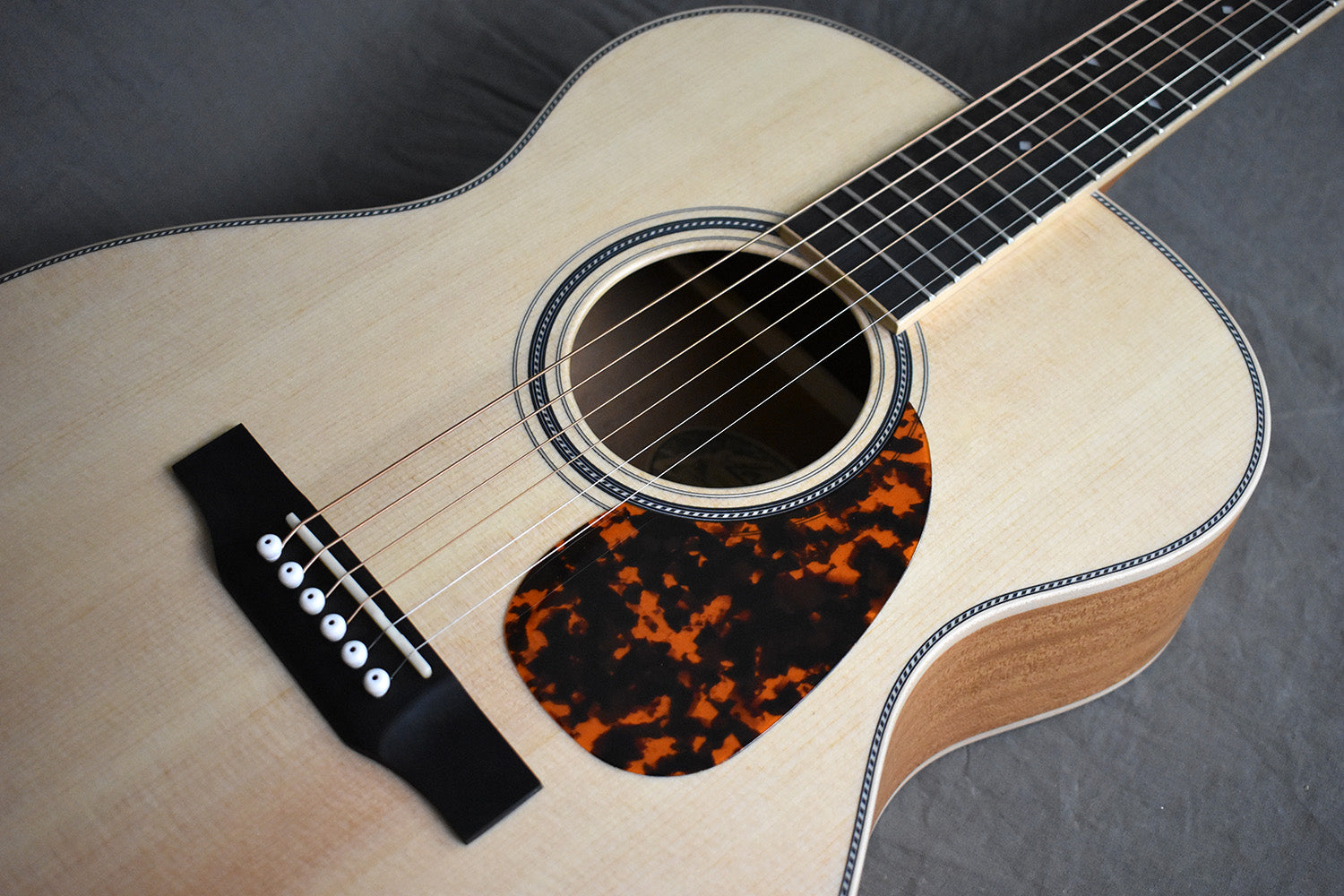 Based on Jean's original designs, Larrivée’s Scalloped hybrid bracing design contributes to the OM-40’s overall balance—tight low end, clear trebles, and an even response across the spectrum. The mahogany neck has a comfortable “round C” profile with a 1-3/4" nut width and 25.5" scale, offering a familiar feel. An Ebony fingerboard and bridge provide smooth playability and a refined touch that aligns the guitar’s understated style