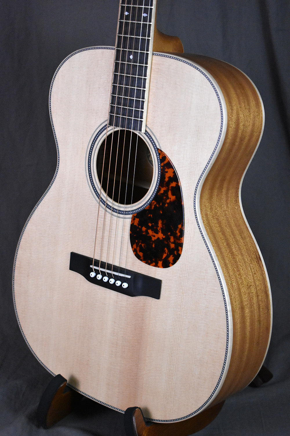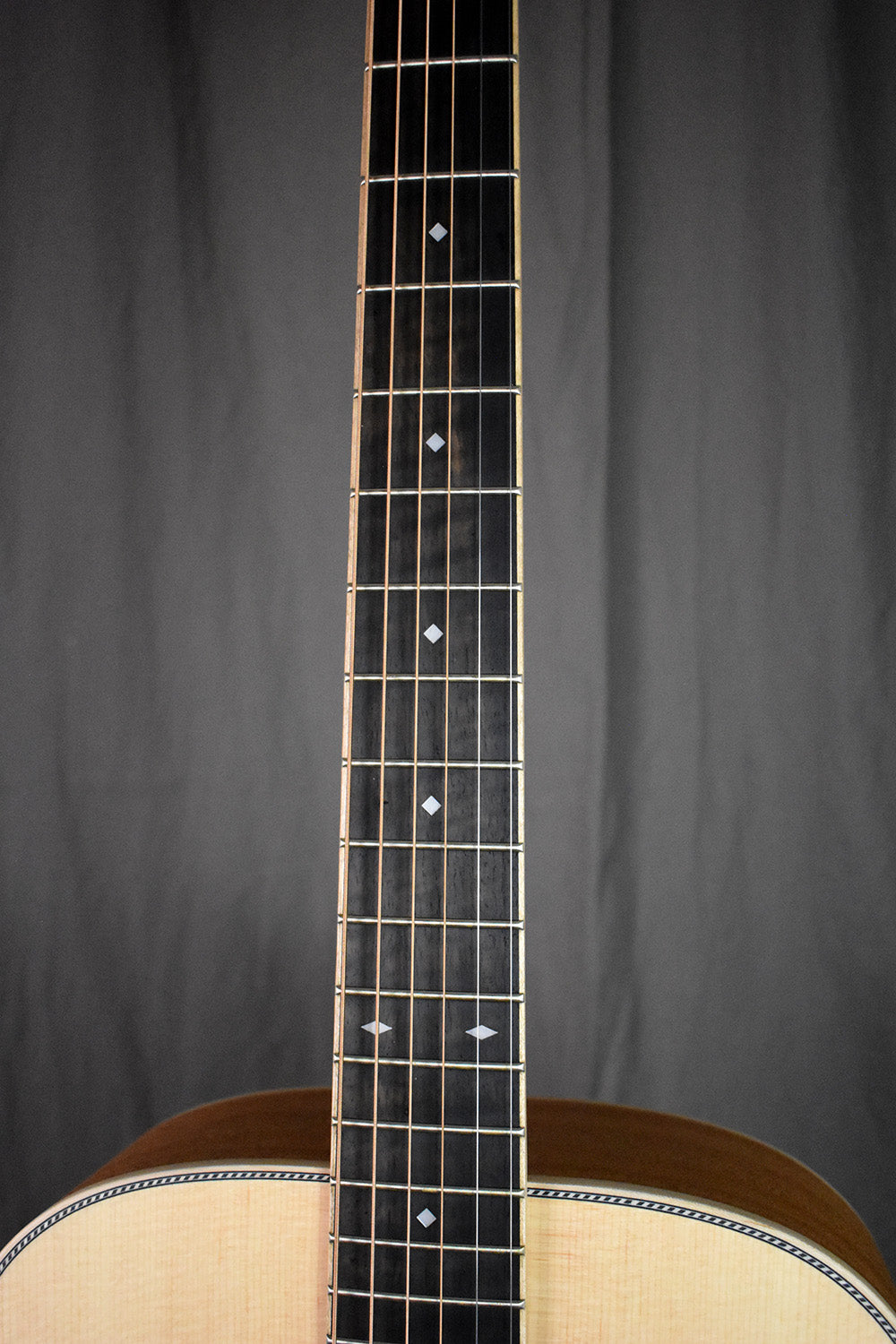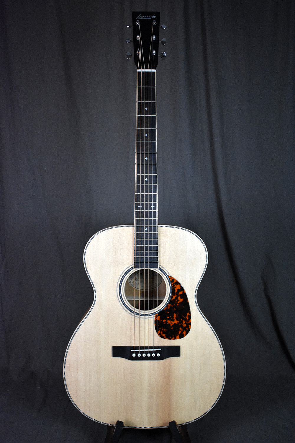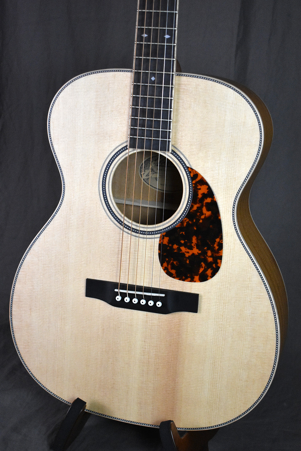 Based on Jean's original designs, Larrivée’s Scalloped hybrid bracing design contributes to the OM-40’s overall balance—tight low end, clear trebles, and an even response across the spectrum. The mahogany neck has a comfortable “round C” profile with a 1-3/4" nut width and 25.5" scale, offering a familiar feel. An Ebony fingerboard and bridge provide smooth playability and a refined touch that aligns the guitar’s understated style