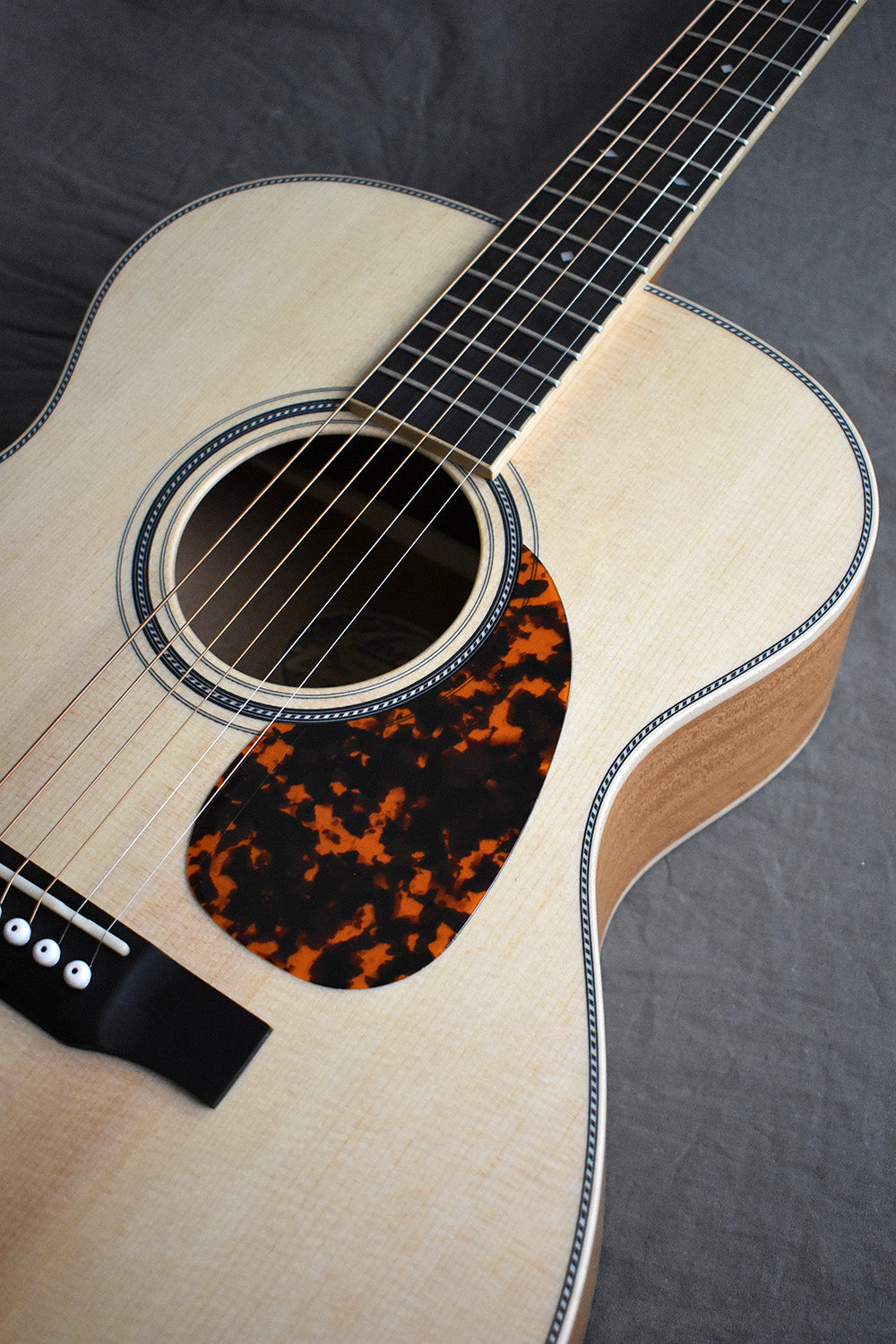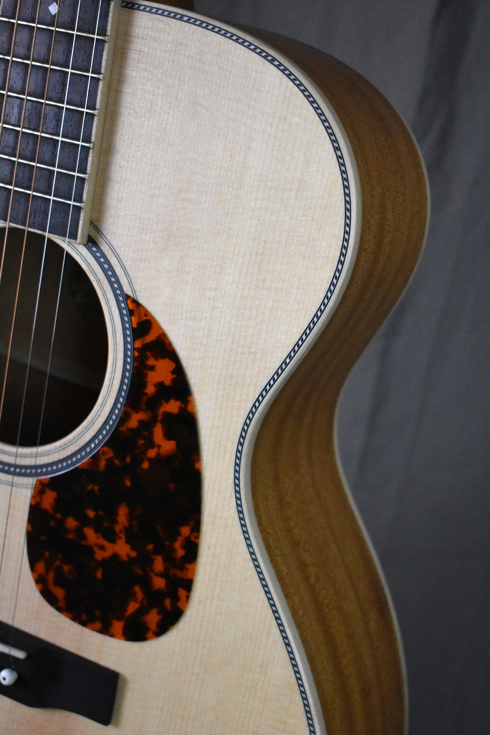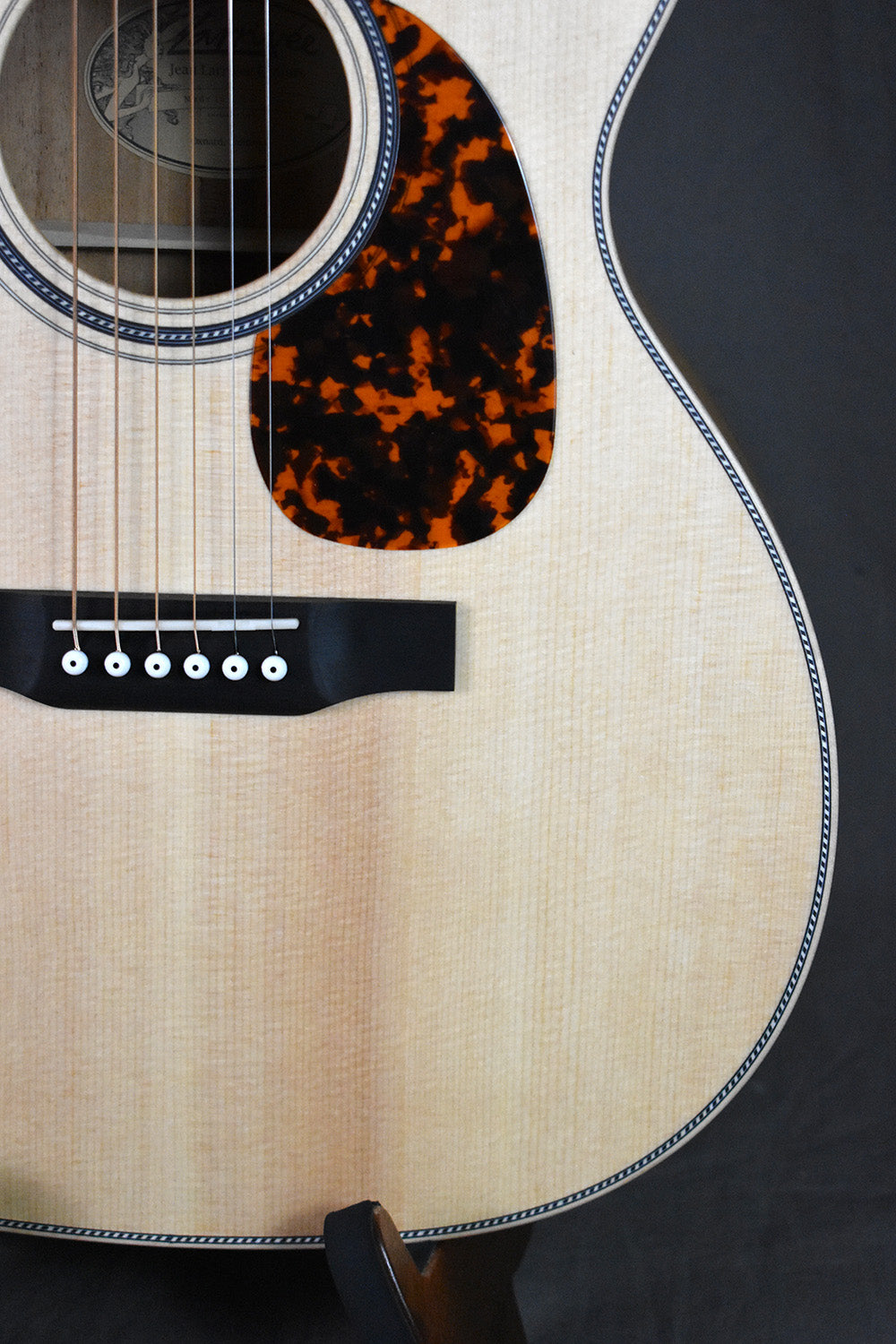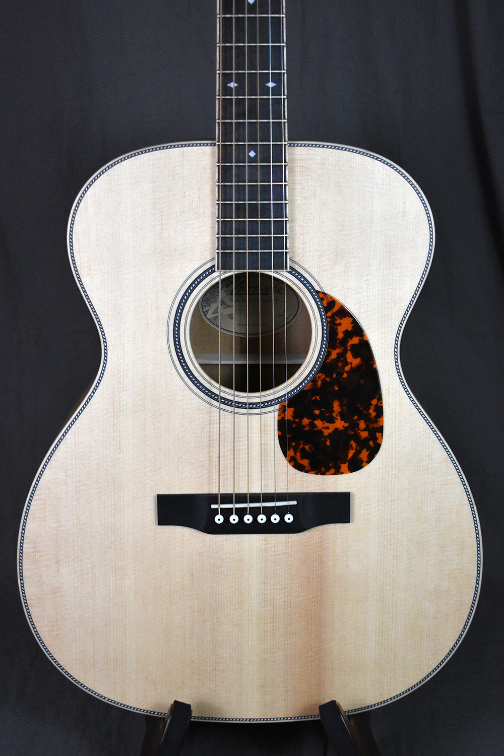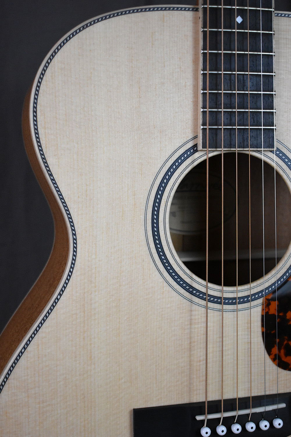 Based on Jean's original designs, Larrivée’s Scalloped hybrid bracing design contributes to the OM-40’s overall balance—tight low end, clear trebles, and an even response across the spectrum. The mahogany neck has a comfortable “round C” profile with a 1-3/4" nut width and 25.5" scale, offering a familiar feel. An Ebony fingerboard and bridge provide smooth playability and a refined touch that aligns the guitar’s understated style