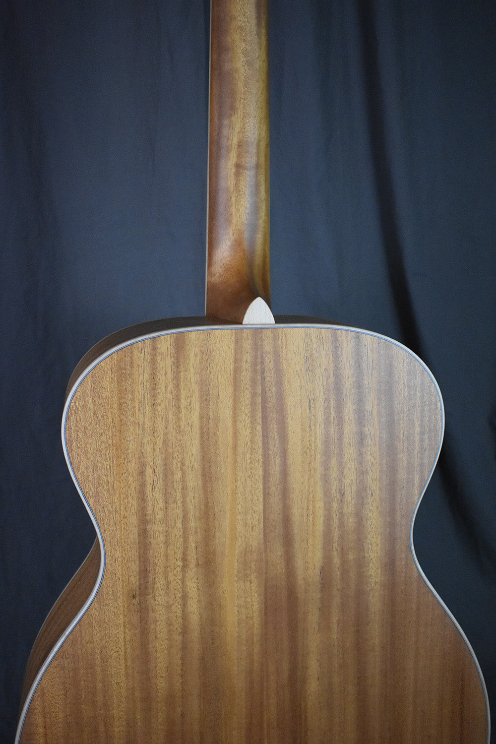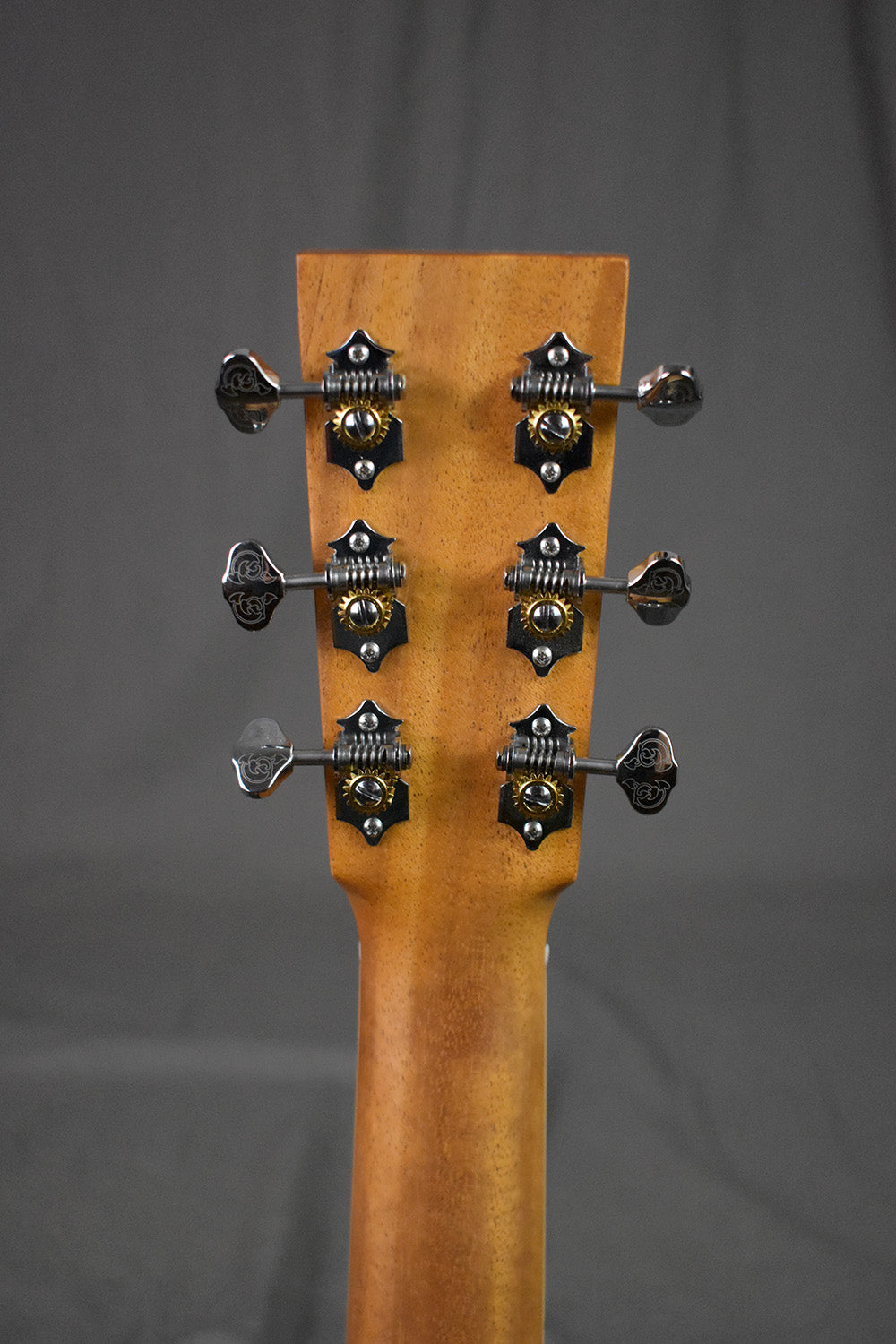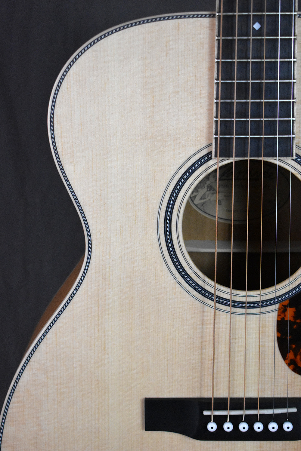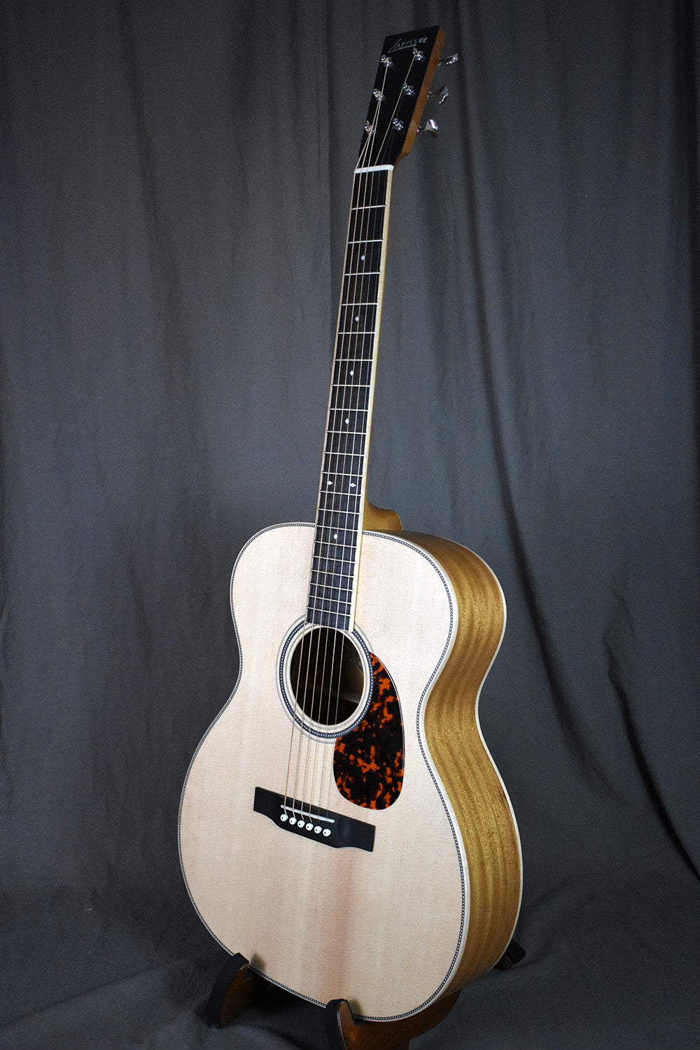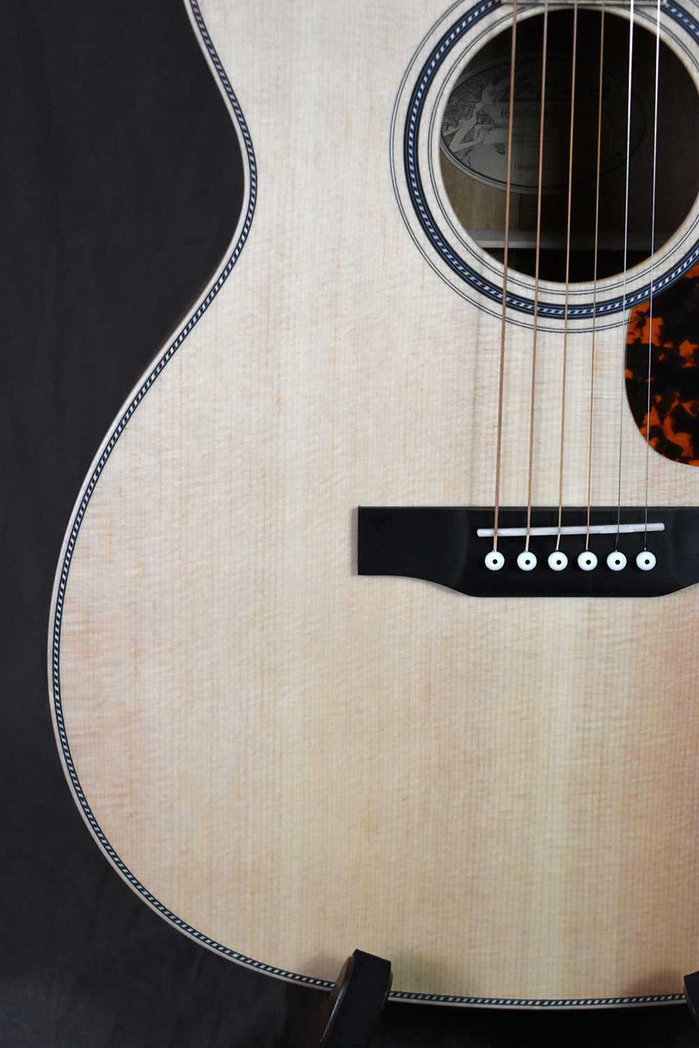 Based on Jean's original designs, Larrivée’s Scalloped hybrid bracing design contributes to the OM-40’s overall balance—tight low end, clear trebles, and an even response across the spectrum. The mahogany neck has a comfortable “round C” profile with a 1-3/4" nut width and 25.5" scale, offering a familiar feel. An Ebony fingerboard and bridge provide smooth playability and a refined touch that aligns the guitar’s understated style
